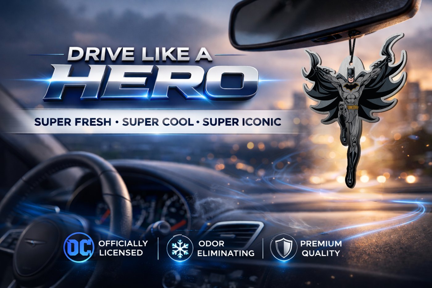 Easy to hang and perfectly sized, these air fresheners are ideal for your car, truck, SUV, RV, home, or any small space. Plus, every Elektroplate air freshener comes in stylish, gift-ready retail packaging making it a perfect choice for Batman fans, DC collectors, and anyone who wants to bring a touch of Gotham wherever they go.