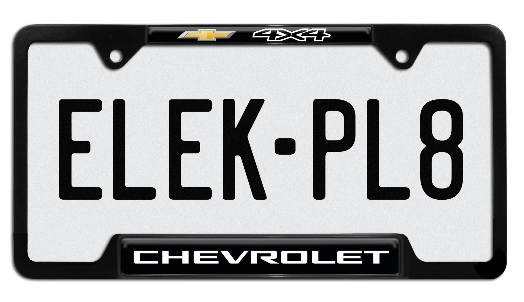 Upgrade your vehicle with this officially licensed Chevy 4x4 license plate frame from Elektroplate, designed for truck owners who want to showcase their off-road style. Built from high-quality metal and available in black powder coated or chrome plated finishes, this frame fits all standard 12 x 6 inch US license plates. The premium 3D domed insert is made in the USA with UV protection to resist fading, cracking, and weather damage, making it ideal for rugged use on Chevy trucks and 4x4 vehicles.
