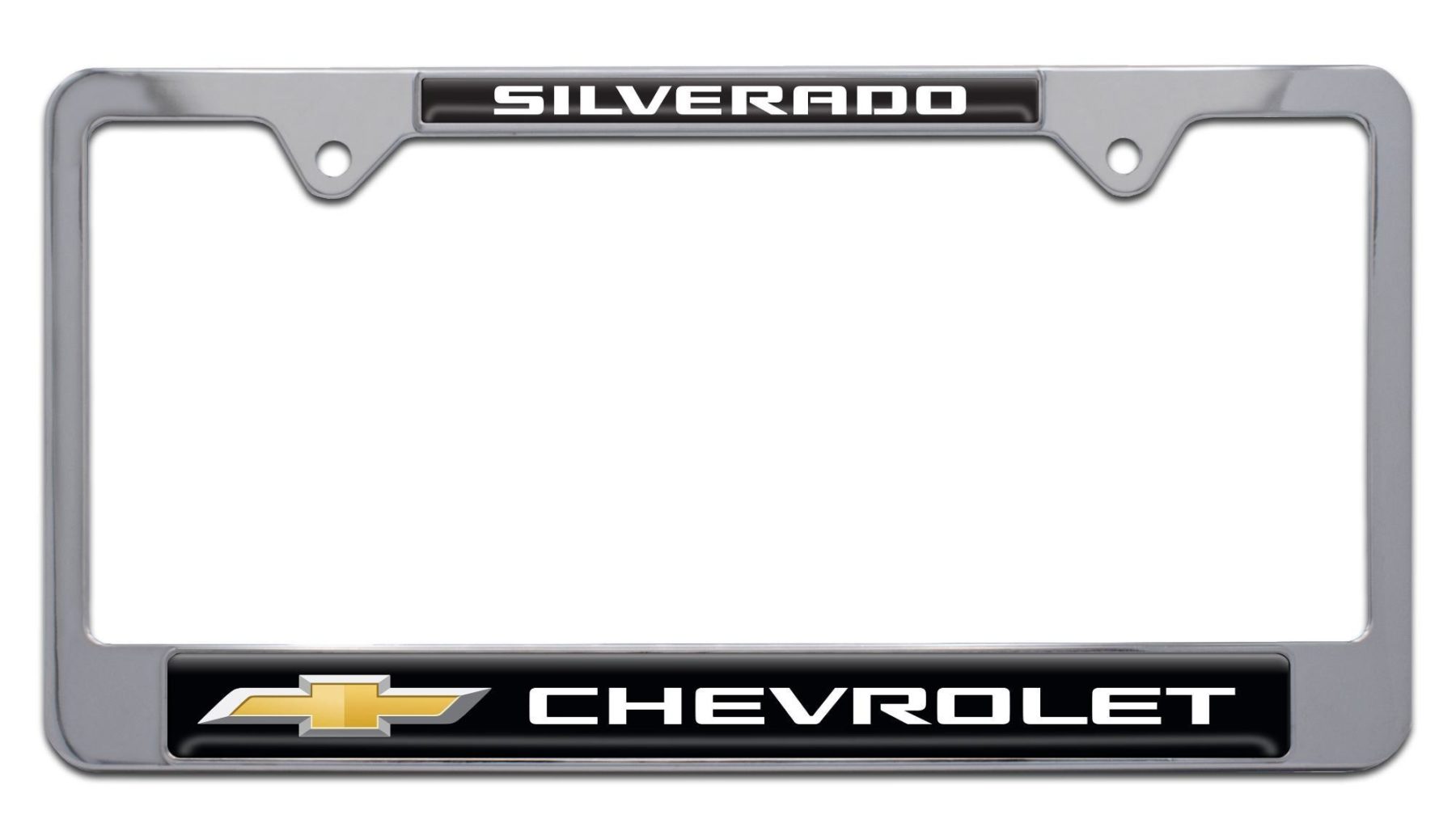 Built with automotive grade materials, this Silverado license plate frame delivers long-lasting durability and performance. Open frames accommodate registration tags on all four corners, while standard frames offer a streamlined look with tag access on the upper corners. This officially licensed Chevy accessory is the perfect finishing touch for any Silverado truck.