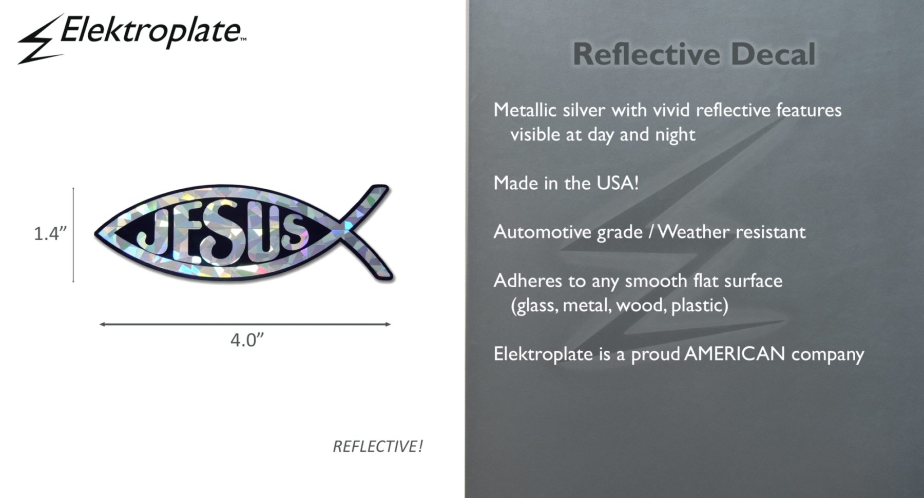 Show your faith with this high-quality Jesus Christian fish decal, proudly made in the USA. Measuring 4.0" x 1.4", it’s the perfect size for a variety of surfaces, including cars, trucks, SUVs, boats, RVs, iPads, computers, phones, and more. Crafted for durability and long-lasting adhesion, this versatile decal can be easily applied to any smooth surface, making it an ideal way to display your beliefs wherever you go. Whether you're cruising down the road, enjoying time on the water, or using your devices, this Christian fish decal serves as a subtle yet powerful reminder of your faith.