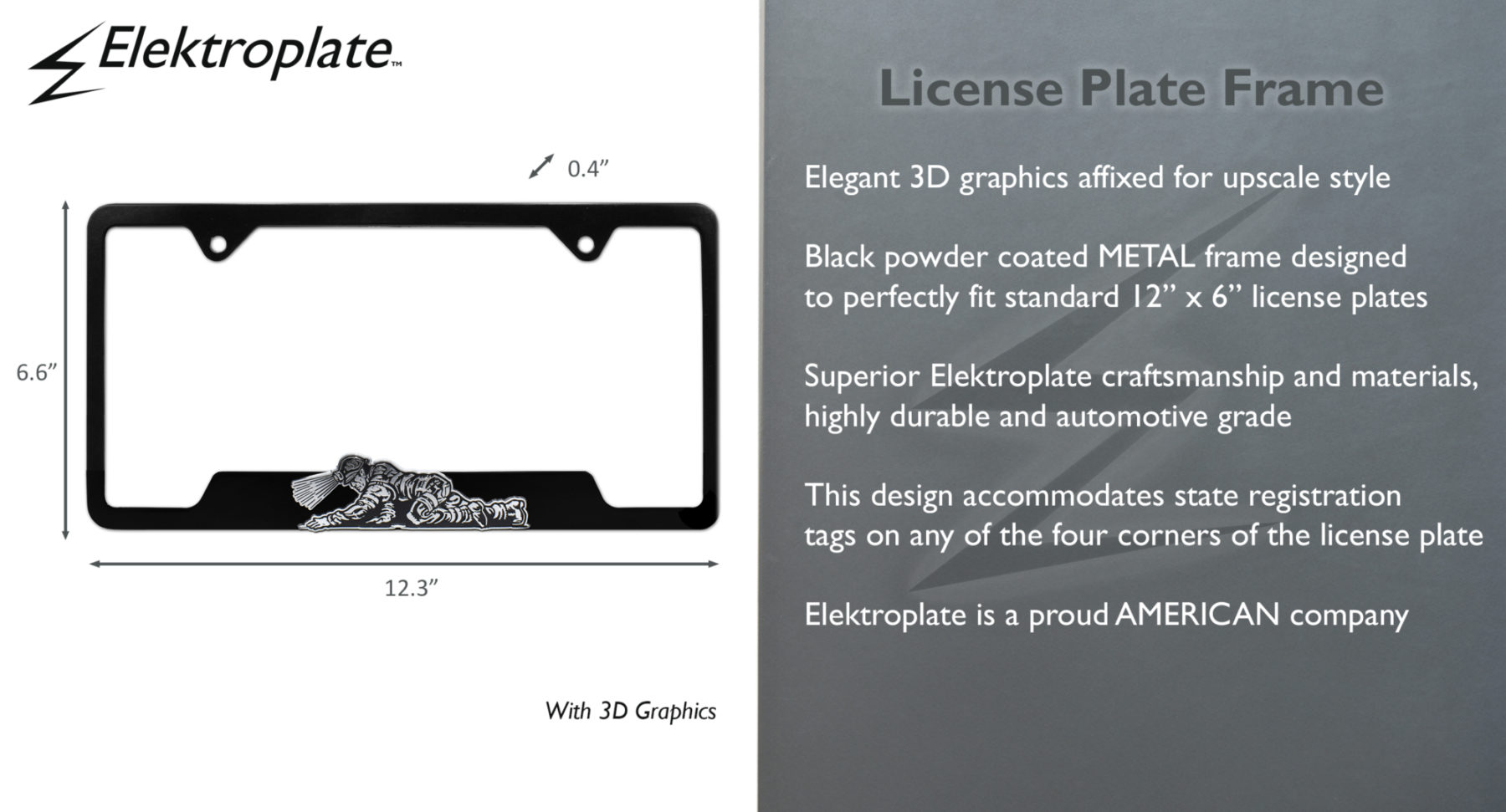 All Elektroplate license plate frames are comprised of an all-metal frame with a black finish made to withstand harsh outdoor conditions. This coal miner license plate frame will look brand new for years to come (as opposed to cheap imitations that will fade or chip within months of being on your vehicle).