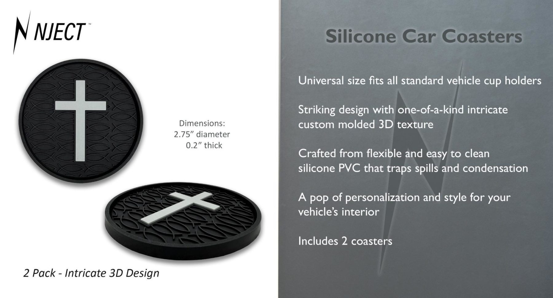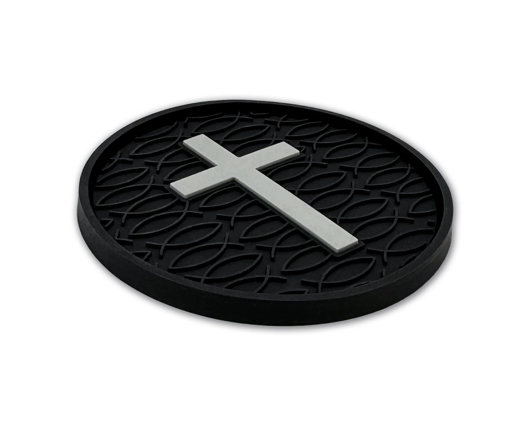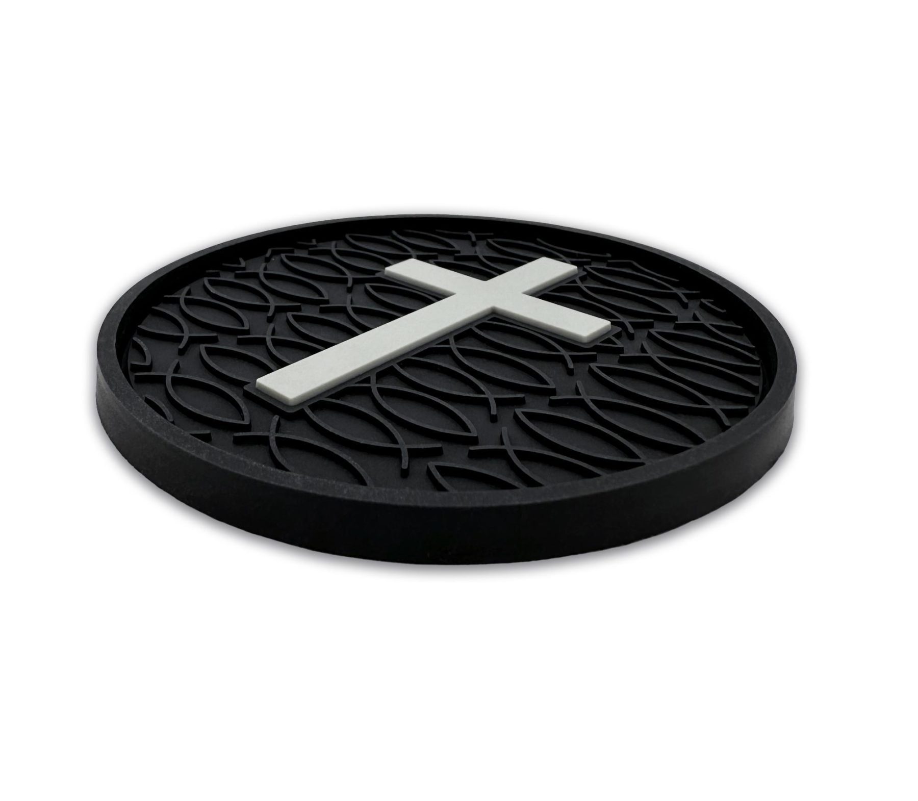 This 2-pack of silicone car coasters features a faith inspired design with intricate custom molded 3D texture and bold color contrast. The raised detailing adds depth, durability, and visual impact while providing a pop of personality and style to your vehicle’s interior. Designed for everyday use, these silicone cup holder coasters combine functional protection with style in a durable automotive accessory.