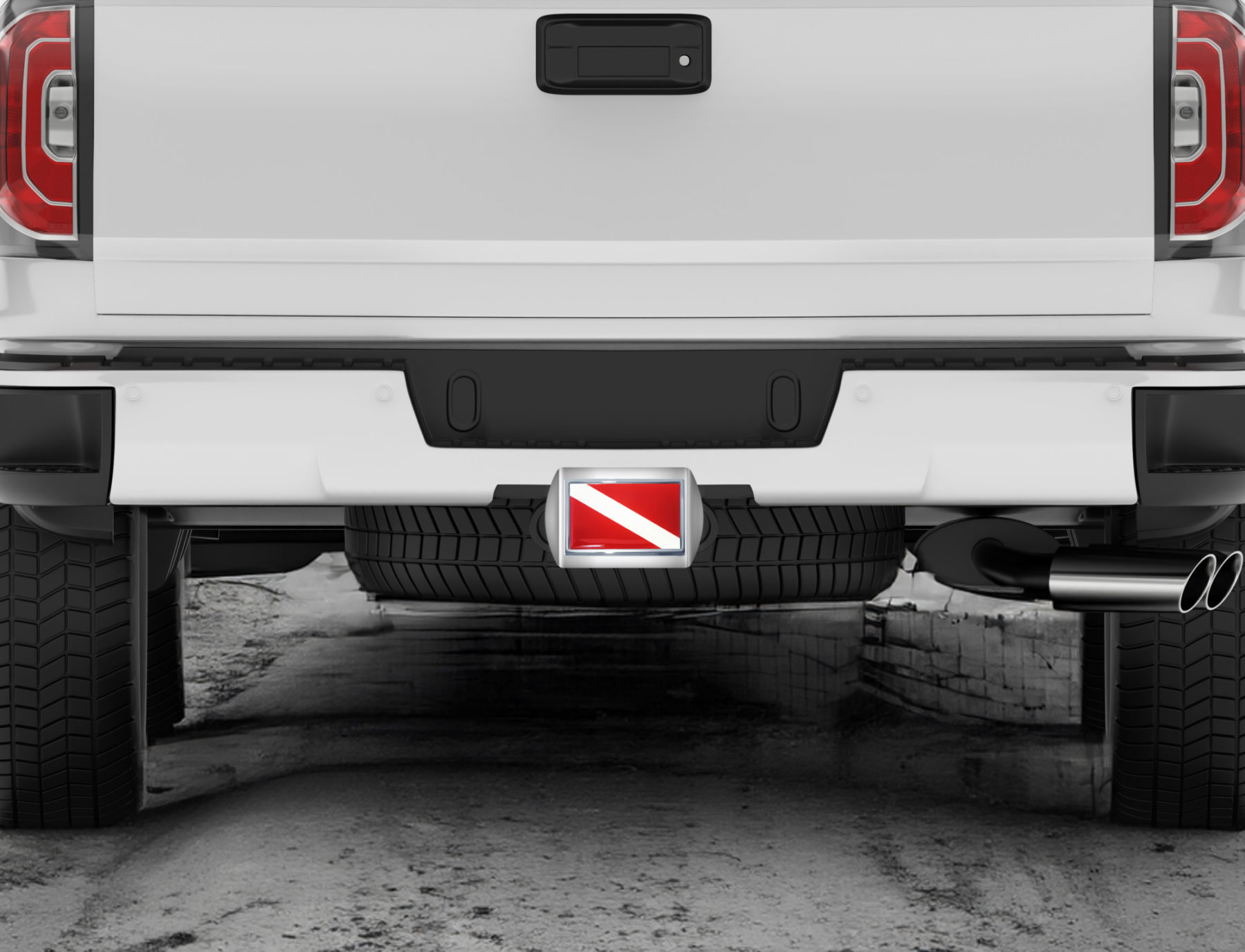Dive Flag Emblem on Chrome Metal Hitch Cover