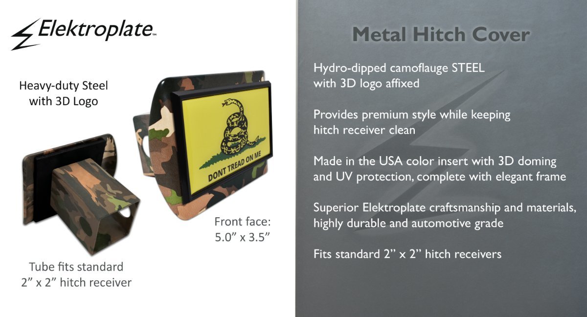 All Elektroplate hitch covers and emblems are crafted with a heavy-duty metal finish built to withstand harsh outdoor conditions. This hitch cover will look brand new for years, unlike cheap imitations that fade or chip within months.