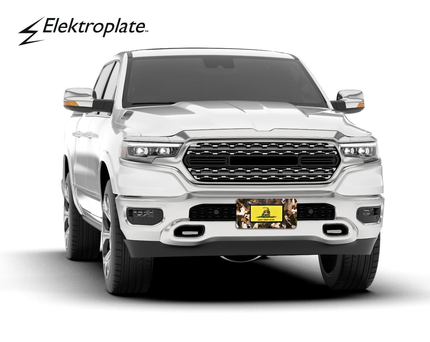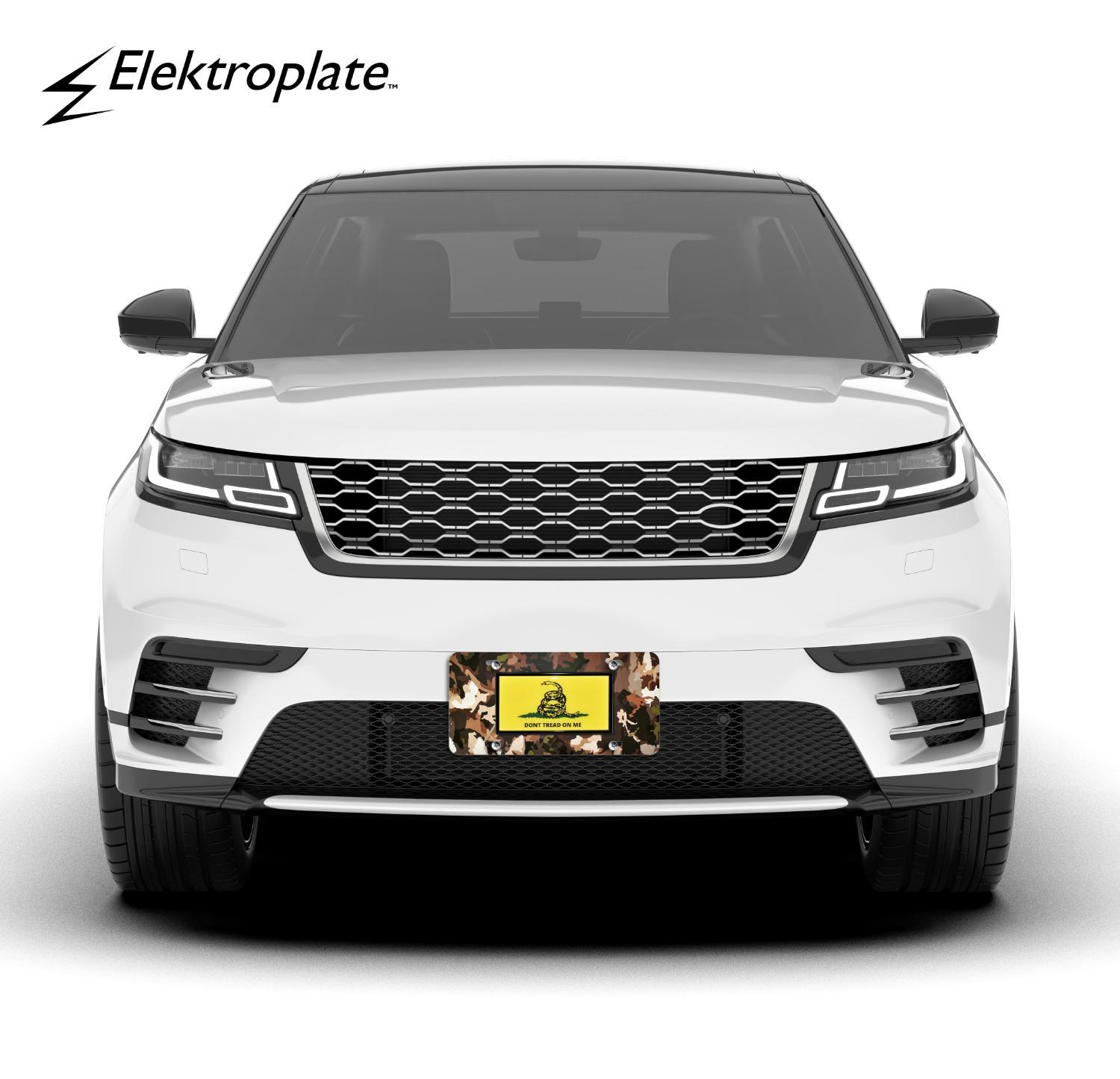 All Elektroplate front license plates are comprised of a heavy-duty metal finish made to withstand harsh outdoor conditions. The affixed logo is made of outdoor grade materials that will also withstand harsh weather. This decorative license plate will look brand new for years to come (as opposed to cheap imitations that will fade or chip within months of being on your vehicle).