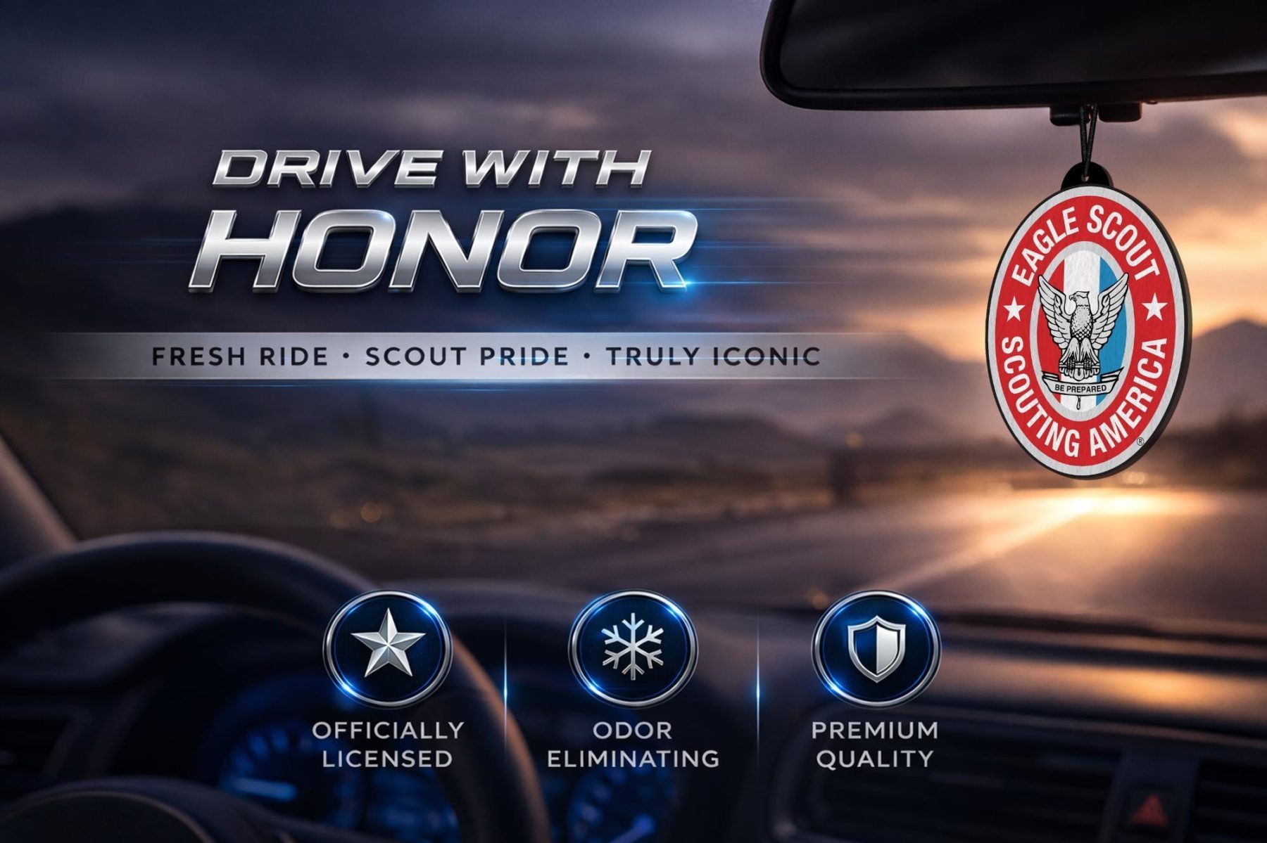 Each set includes six individually packaged air fresheners, making it easy to keep your vehicle smelling fresh or share with fellow Scouts, family, and friends. The Summit Breeze fragrance offers a balanced blend of warm and crisp notes, helping eliminate odors while creating a clean, outdoors-inspired atmosphere. Whether you’re searching for a car air freshener, Scout-themed accessory, or a thoughtful gift, this premium Eagle Scout air freshener combines quality materials, long-lasting scent, and eye-catching design for everyday use.