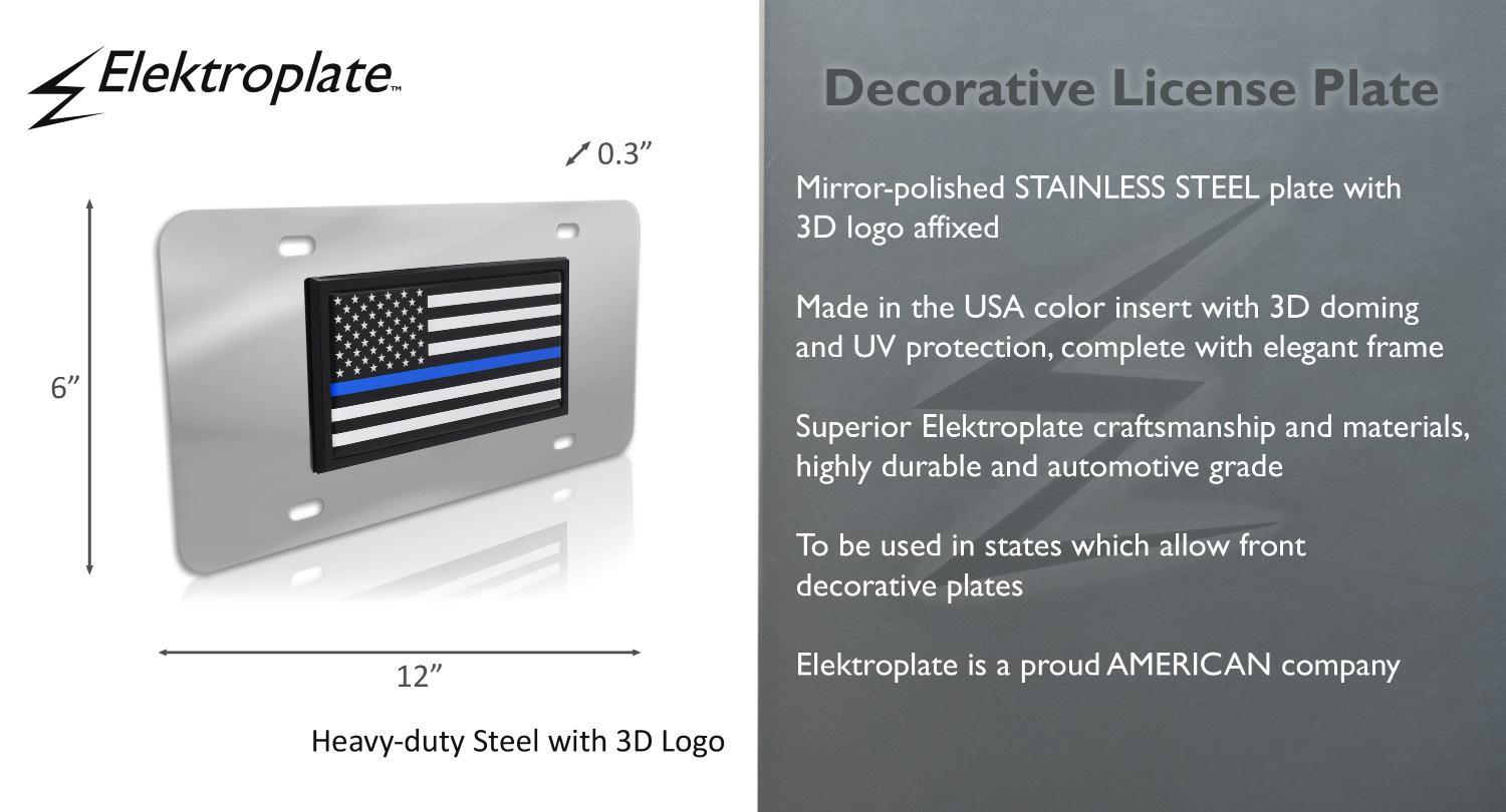 Crafted from heavy-duty outdoor-grade materials, this plate is built to withstand tough weather without fading, cracking, or chipping. Unlike cheap imitations that deteriorate quickly, Elektroplate decorative plates maintain their brand-new appearance for years. A perfect way to add patriotic style, law enforcement pride, and long-lasting durability to your vehicle.