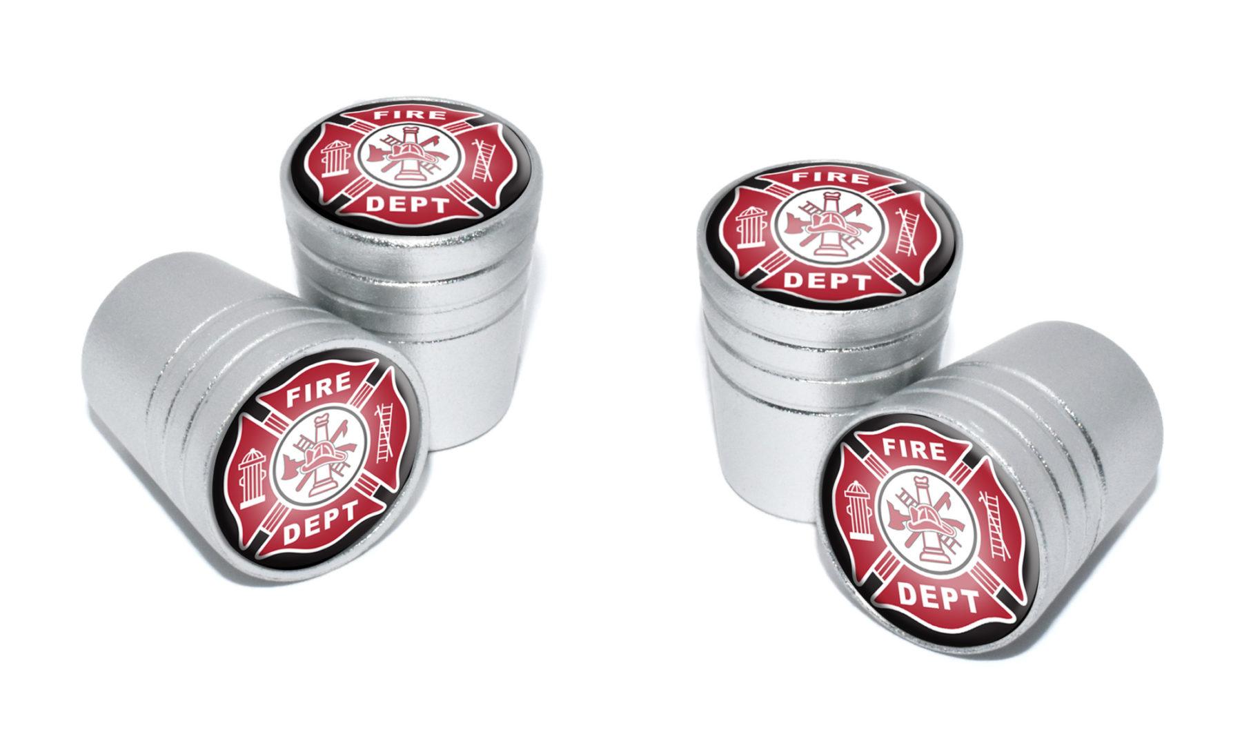 Firefighter Valve Stem Caps - Matte Chrome 4 Pack