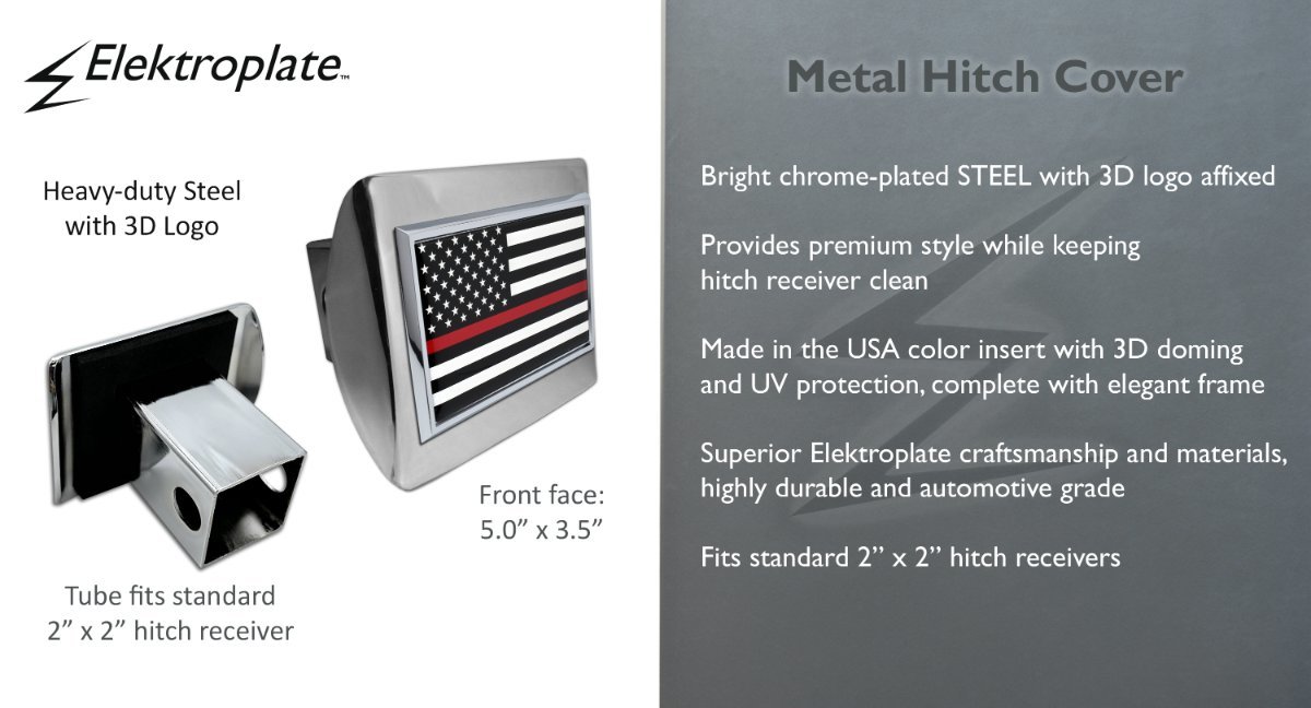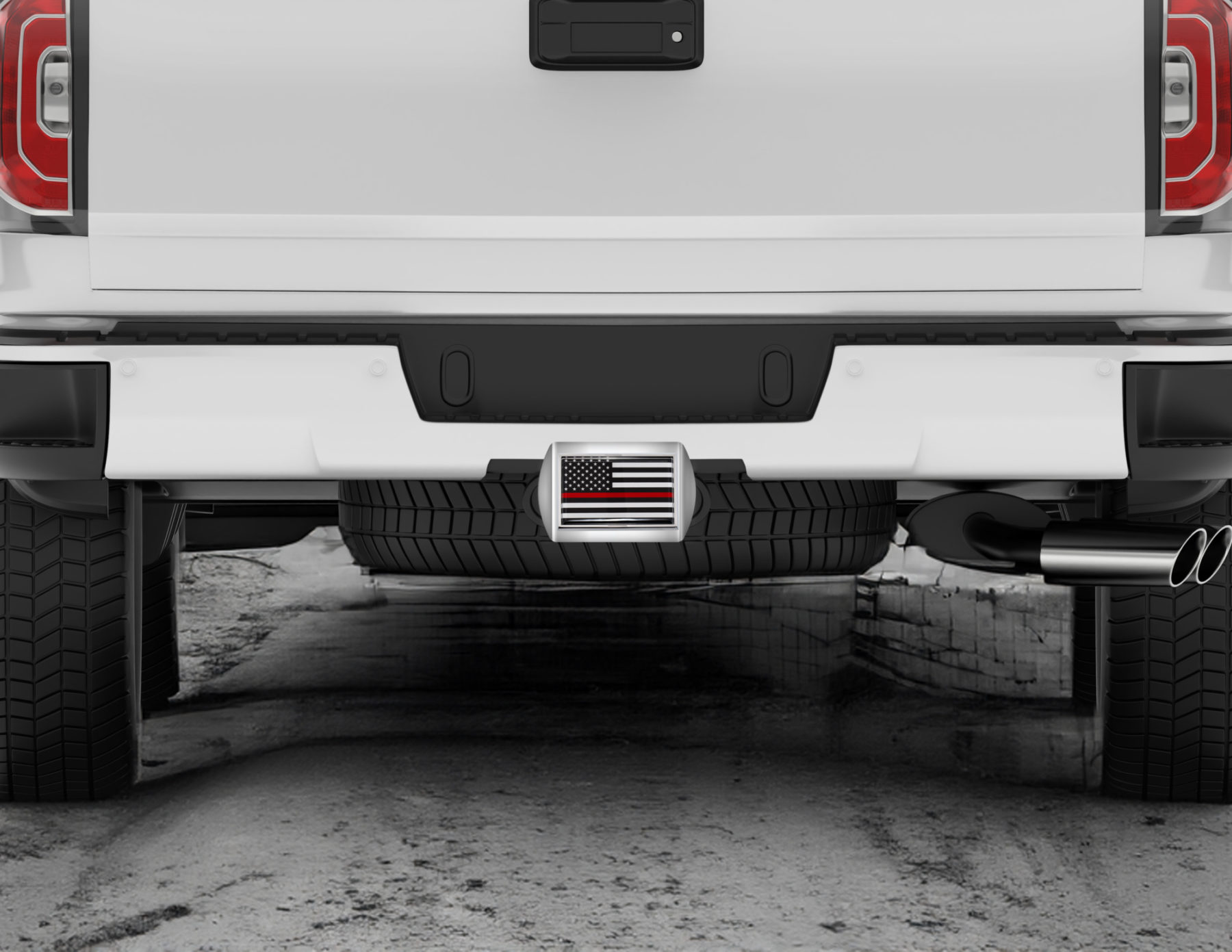 Firefighter Thin Red Line Flag Chrome Metal Hitch Cover