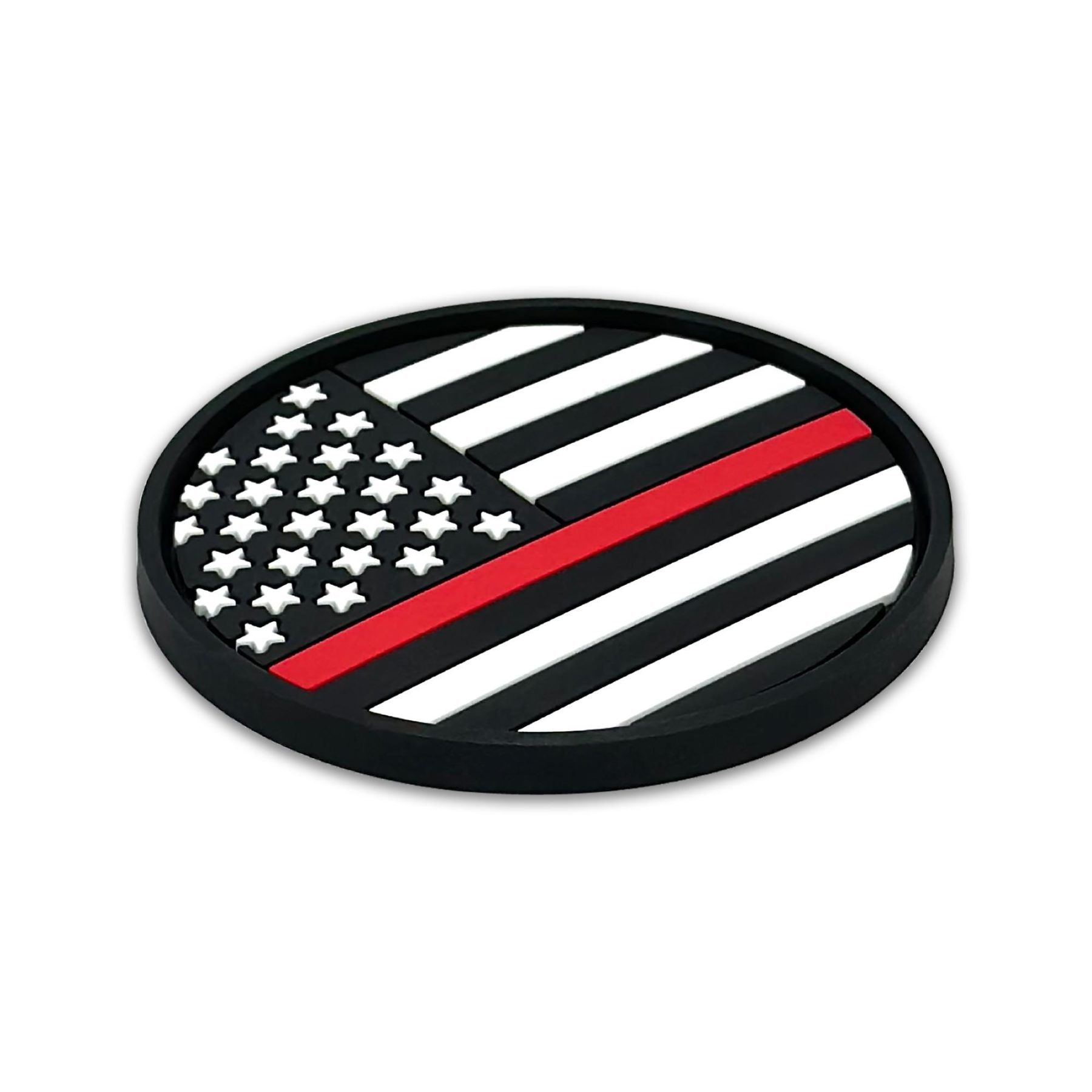 This 2-pack of silicone car coasters features a USA flag design with intricate custom molded 3D texture and bold color contrast. The raised detailing adds depth, durability, and visual impact while providing a pop of personality and style to your vehicle’s interior. Designed for everyday use, these silicone cup holder coasters combine functional protection with first responder pride in a durable automotive accessory.