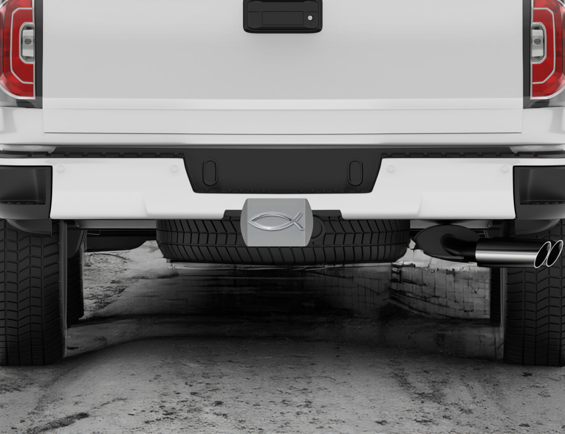Christian Fish Emblem on Brushed Chrome Hitch Cover