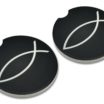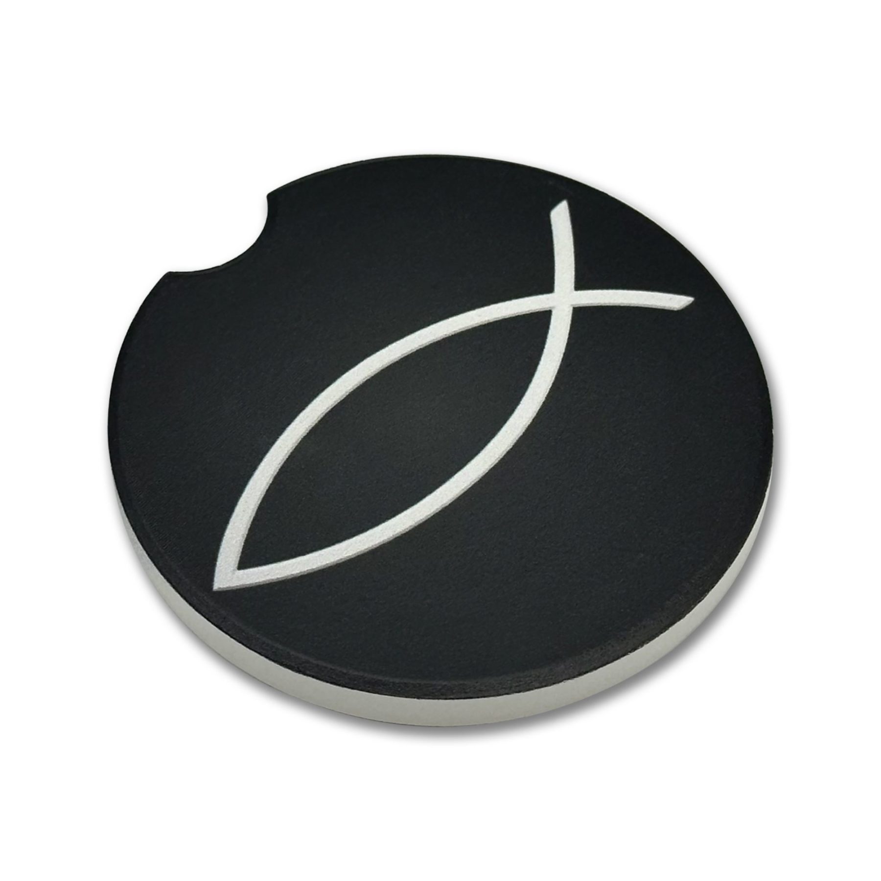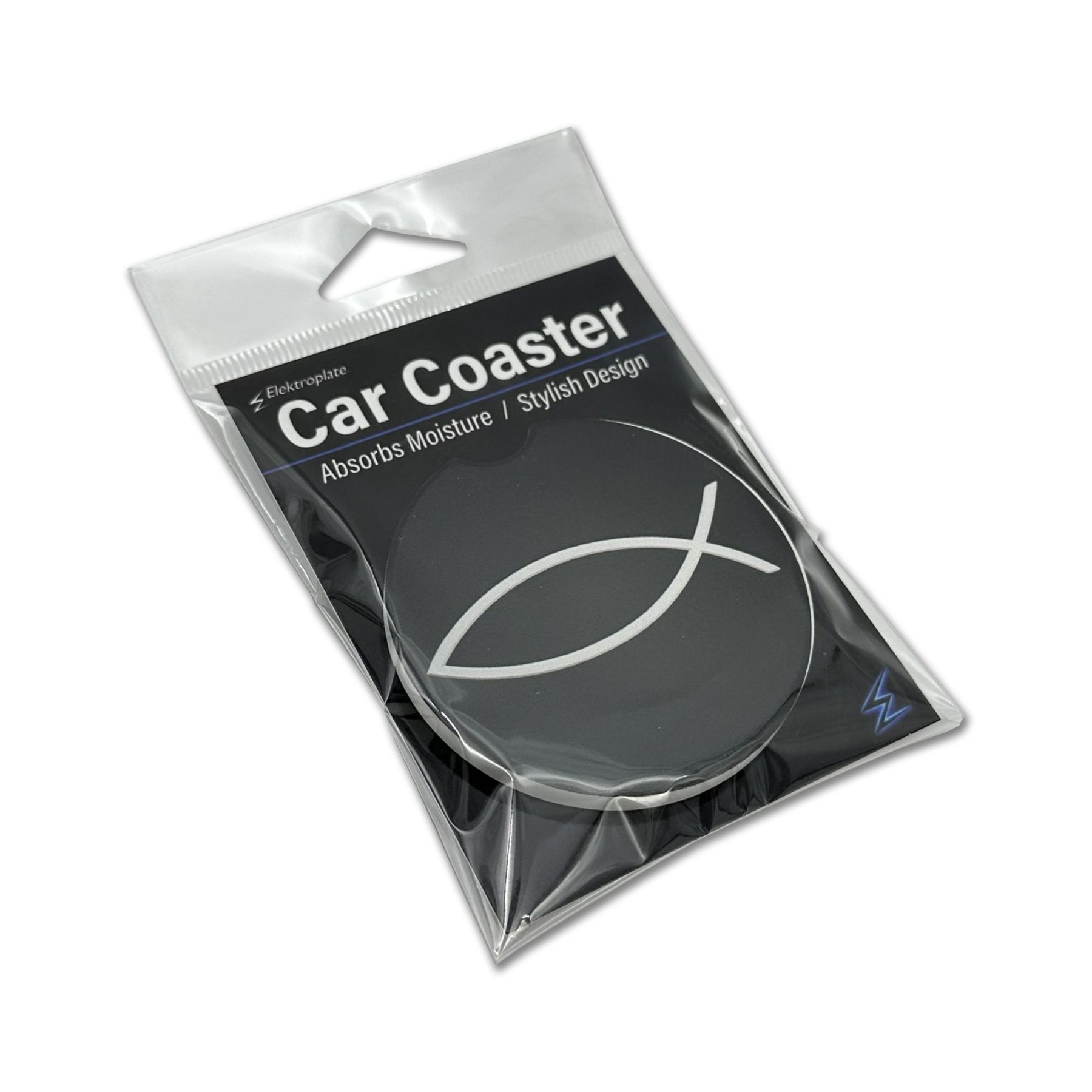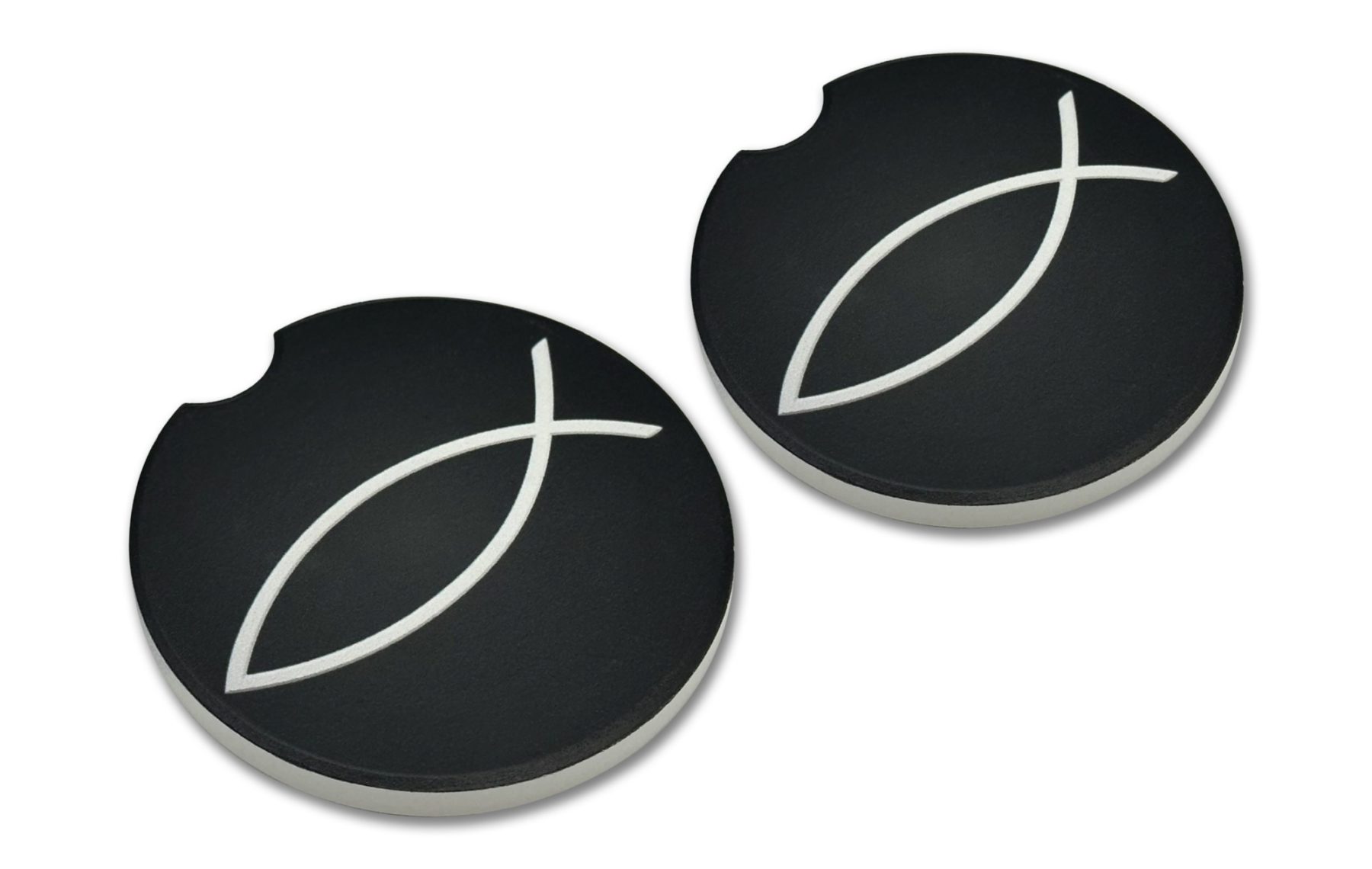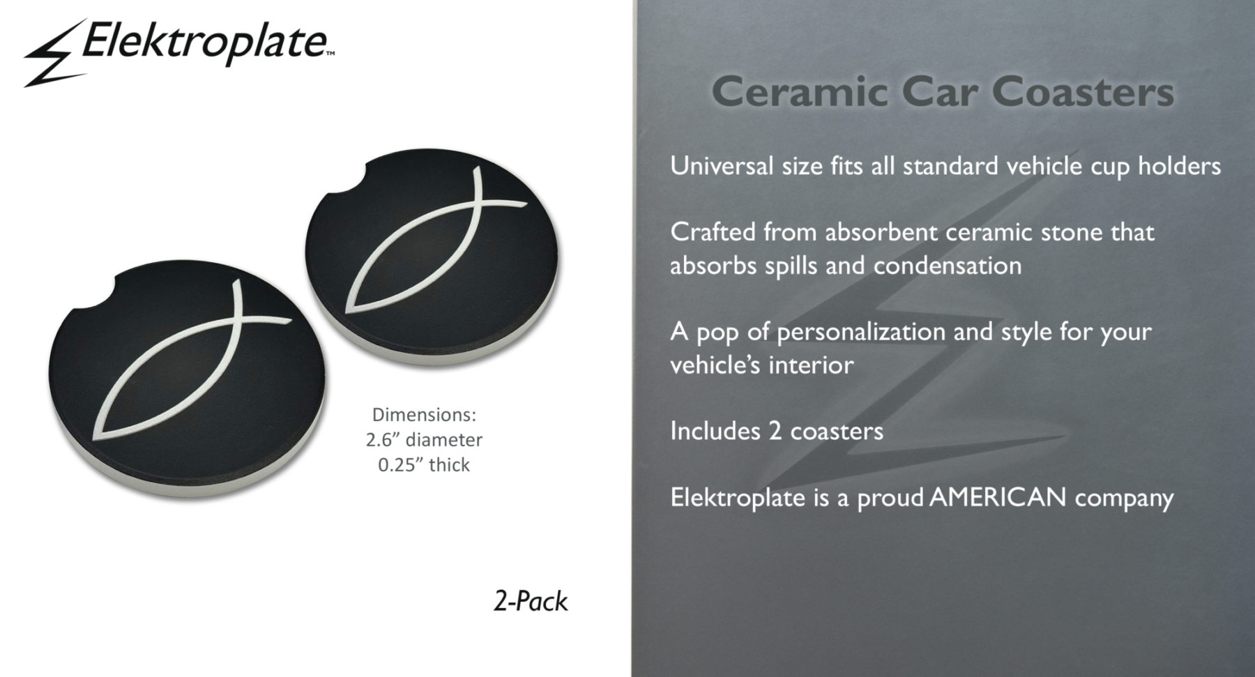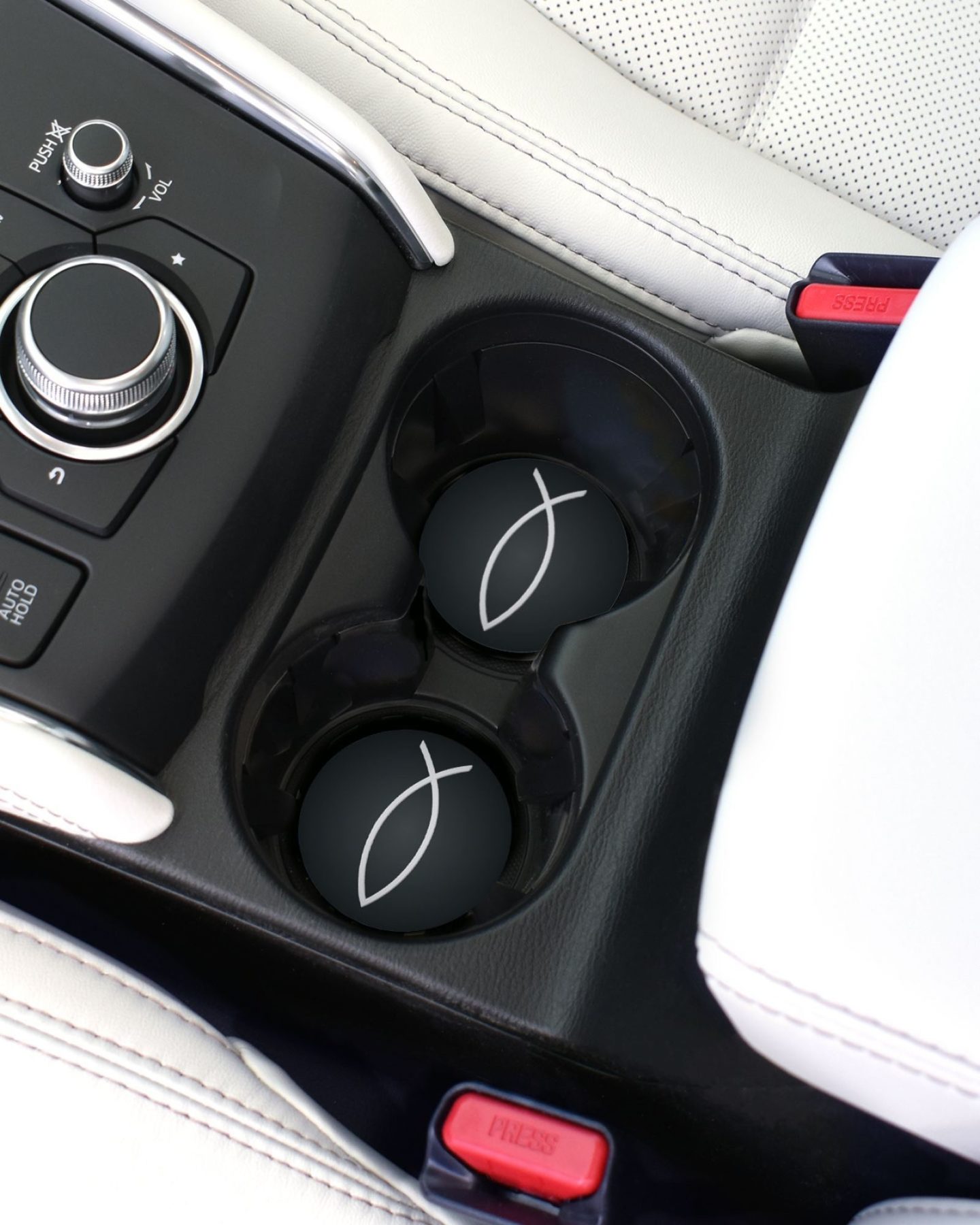 Keep your car cup holders clean and dry with these Elektroplate Christian Fish Car Coasters (Set of 2). Featuring the iconic Ichthys (Christian fish) symbol, these coasters combine faith and function in a sleek, minimal design. Made with an absorbent material to soak up spills and condensation, they help protect your vehicle's interior from unwanted mess. With a universal 2.625" diameter, they fit most standard cup holders in cars, trucks, and SUVs. A perfect gift for believers or a thoughtful addition to your own ride.