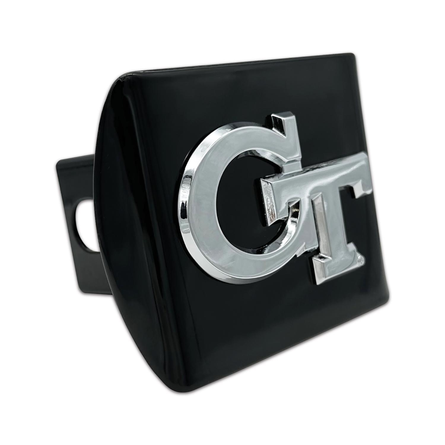 Officially licensed - Georgia Tech University ALL-METAL hitch cover (front plate is 4.5in x 3.5in) by Elektroplate. A step above in quality and appearance over cheaper plastic and pewter versions. Comprised of an all-metal Georgia Tech University GT emblem adhered to a black all-metal hitch cover mount. The hitch cover fits standard 2” trailer hitch receivers (if it does not fit perfectly, you may return for a full refund).