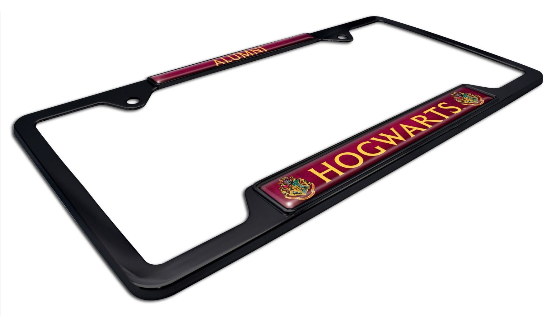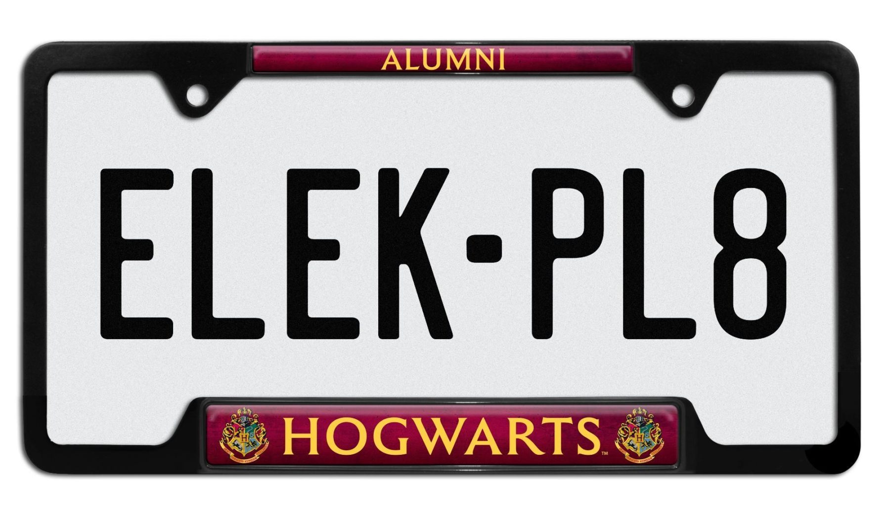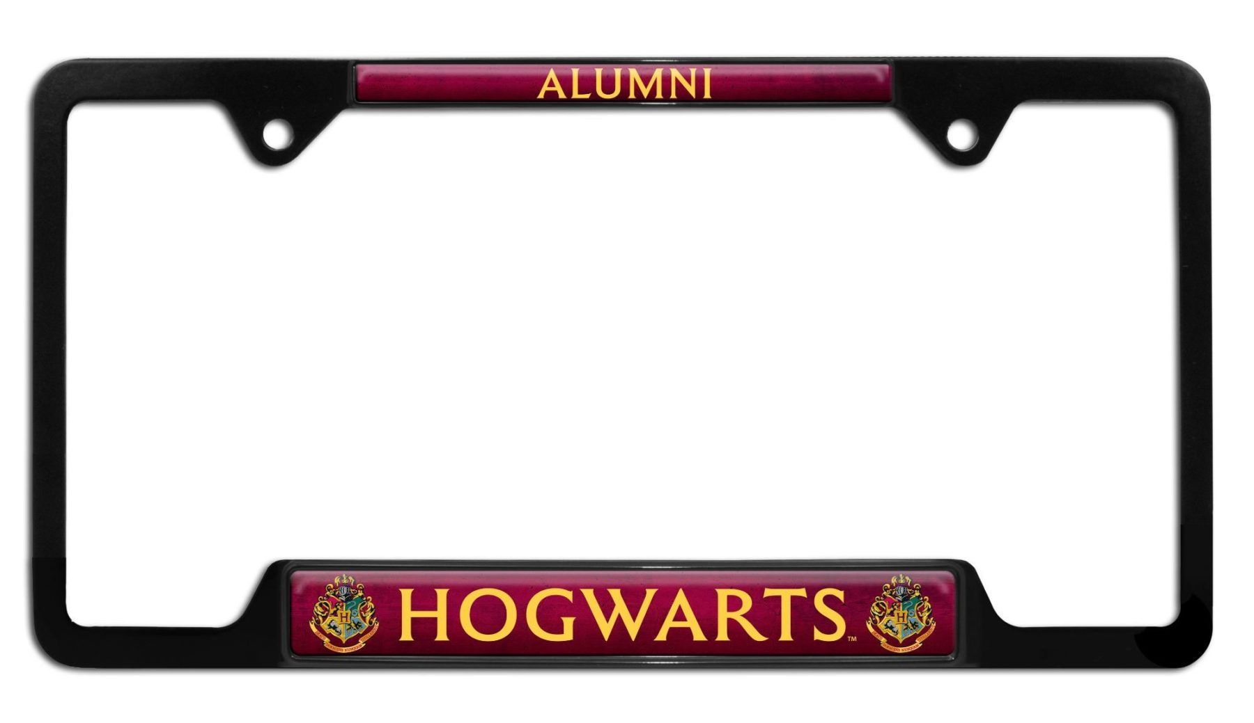 Represent Hogwarts with this Harry Potter Alumni license plate frame, featuring a black powder coated metal construction with classic graphics. Designed to fit standard 12 x 6 inch US license plates, this officially licensed frame provides a clean and modern look.