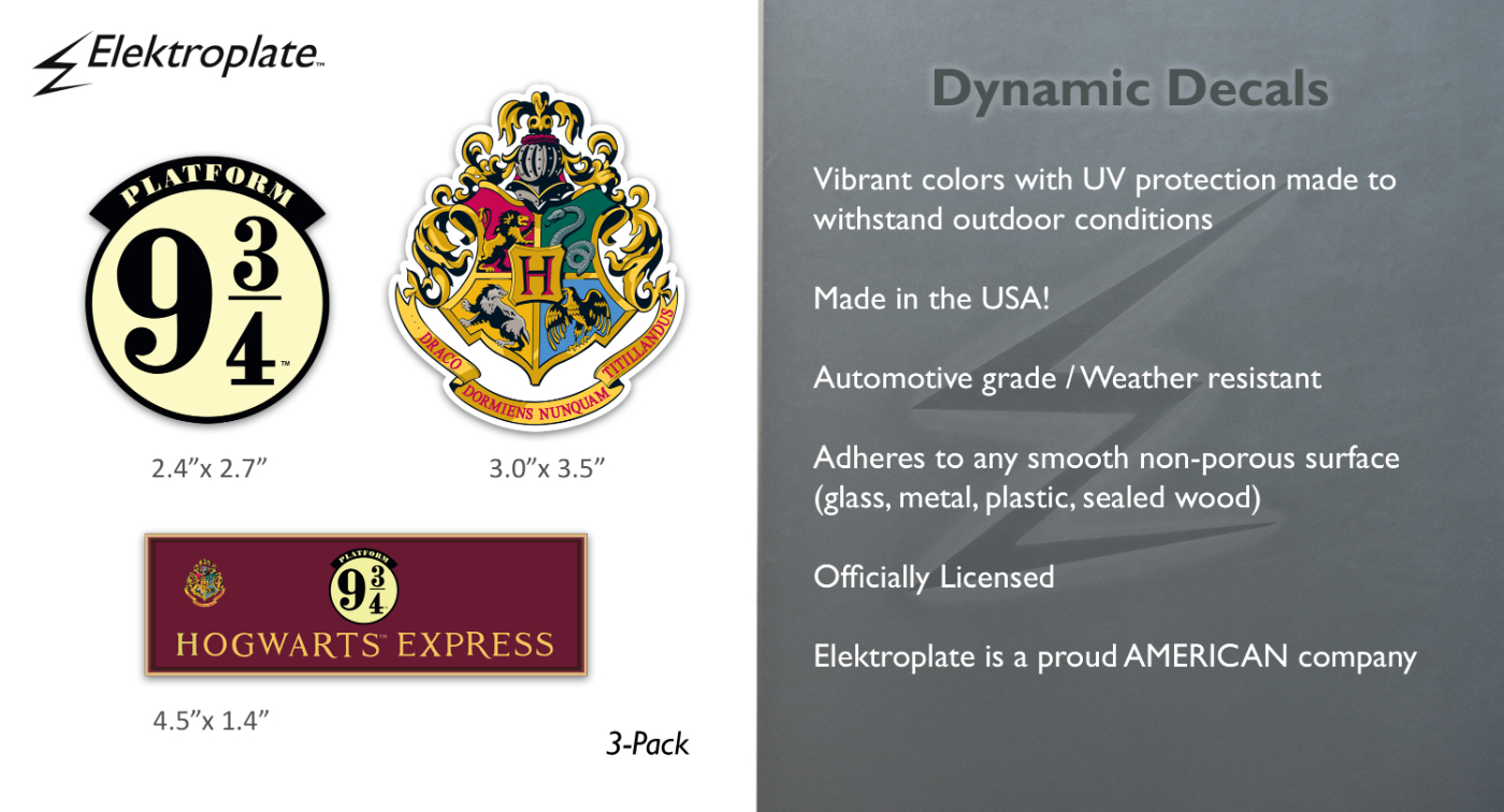 Show your love for the world of wizardry with this Officially Licensed Harry Potter decal 3-pack. Featuring 3 iconic designs, this set brings the Hogwarts Express to life in bold, vibrant colors. Whether you’re a fan of the books or blockbuster films, these decals are perfect for celebrating your favorite wizards.