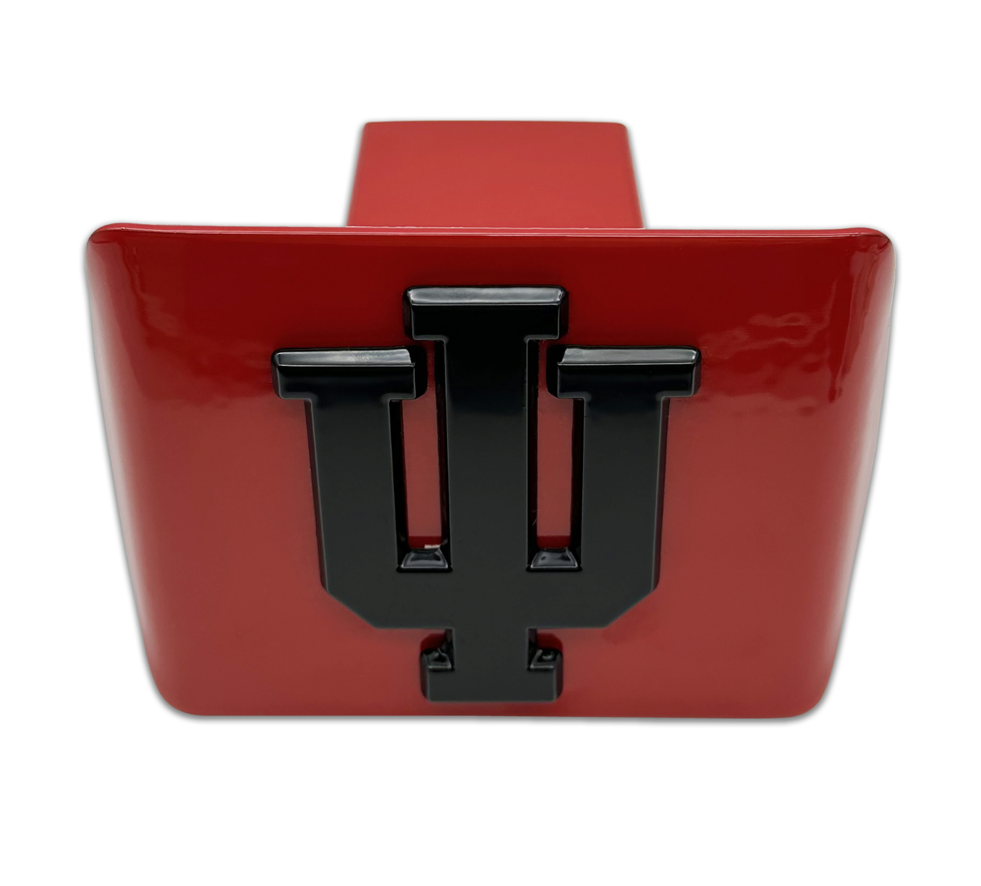 Officially licensed - Indiana University Hoosiers ALL-METAL hitch cover (front plate is 5" x 3.5") by Elektroplate. A step above in quality and appearance over cheaper plastic and pewter versions. Comprised of an all-metal Indiana University "IU" emblem adhered to a red powder coated all-metal hitch cover mount. The hitch cover fits standard 2” trailer hitch receivers (if it does not fit perfectly, you may return for a full refund).