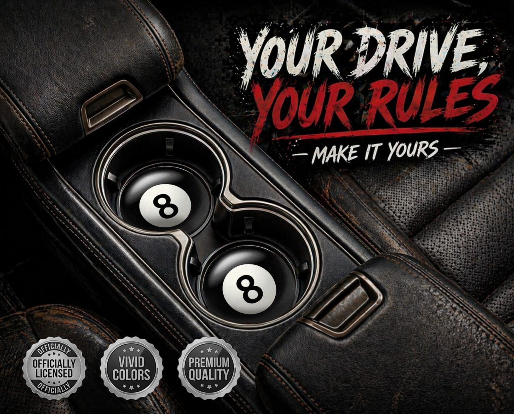 Keep your ride clean and stylish with Elektroplate's 8 Ball Car Coasters (Set of 2). These 2.6" diameter coasters are designed to fit all standard cup holders and absorb spills and condensation while maintaining their vivid colors. Crafted with care, these high-quality car coasters not only protect your car, but also add a touch of personality to your space. Easy to clean and durable enough for everyday use, they’re the ideal accessory to showcase your style on the go.