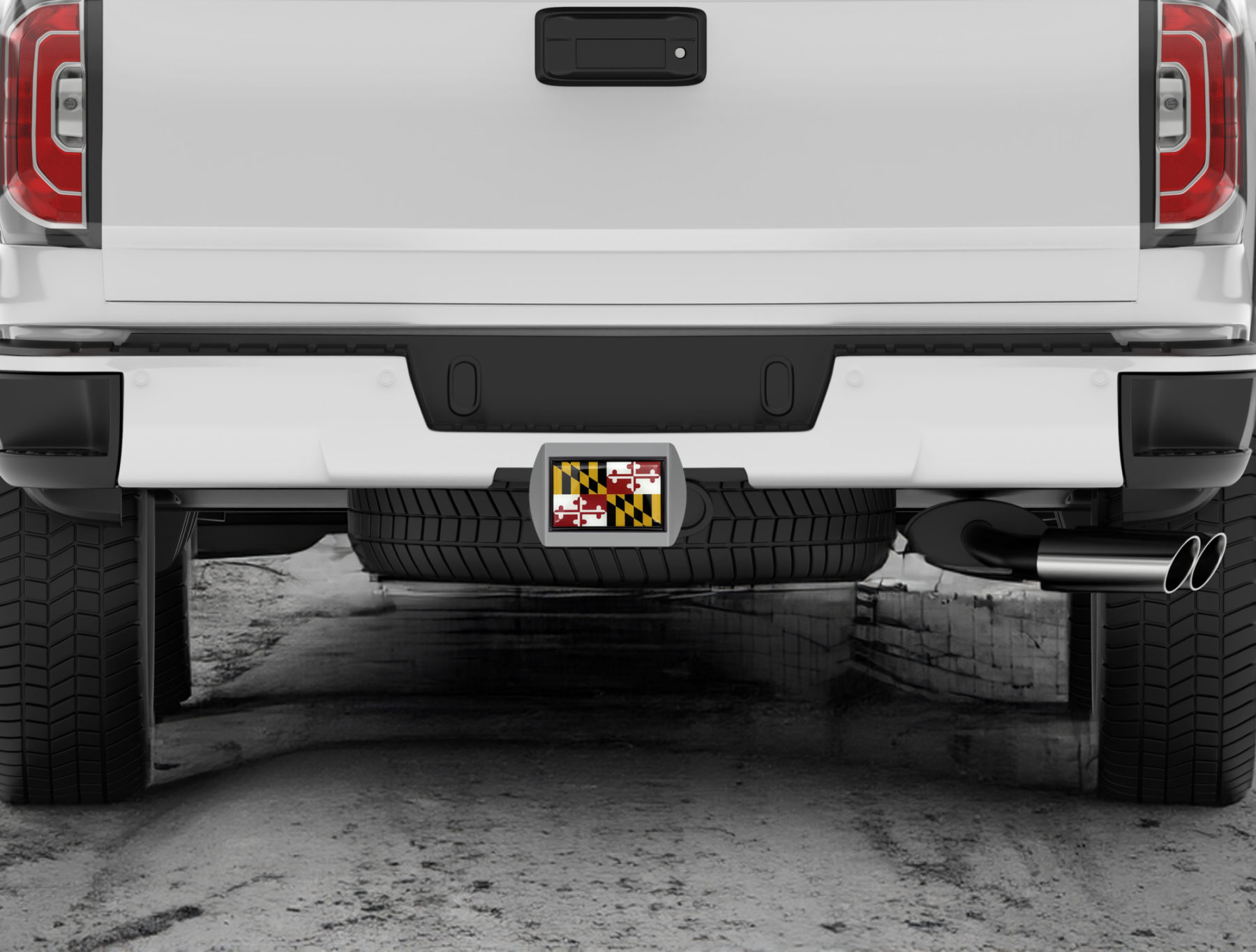 Maryland Flag Brushed Chrome Metal Hitch Cover