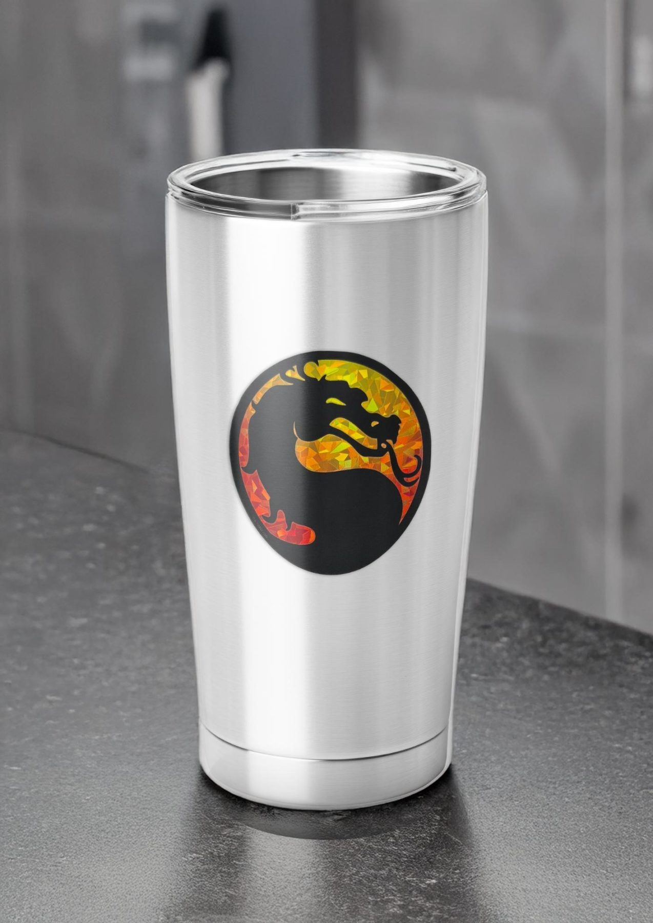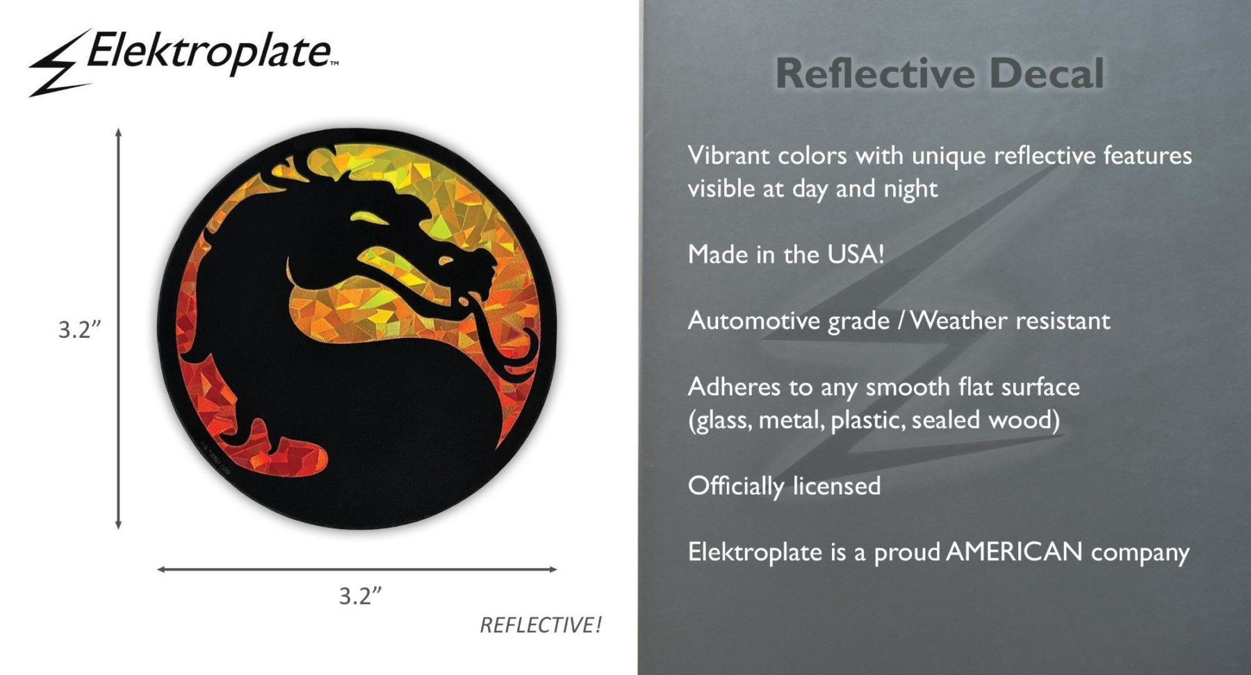 Finish your setup with this Mortal Kombat Logo reflective decal featuring the iconic dragon emblem. Measuring approximately 3.2 inches wide by 3.2 inches tall, this decal offers a clean, balanced look perfect for cars, laptops, and gaming setups. The reflective finish enhances visibility at night while maintaining bold color during the day.