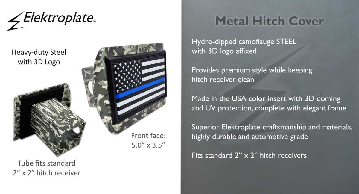 Our high-end auto accessories are the perfect way to showcase your Police pride everywhere you drive. In addition, all Elektroplate hitch covers are packaged in elegant retail packaging to make a great gift!