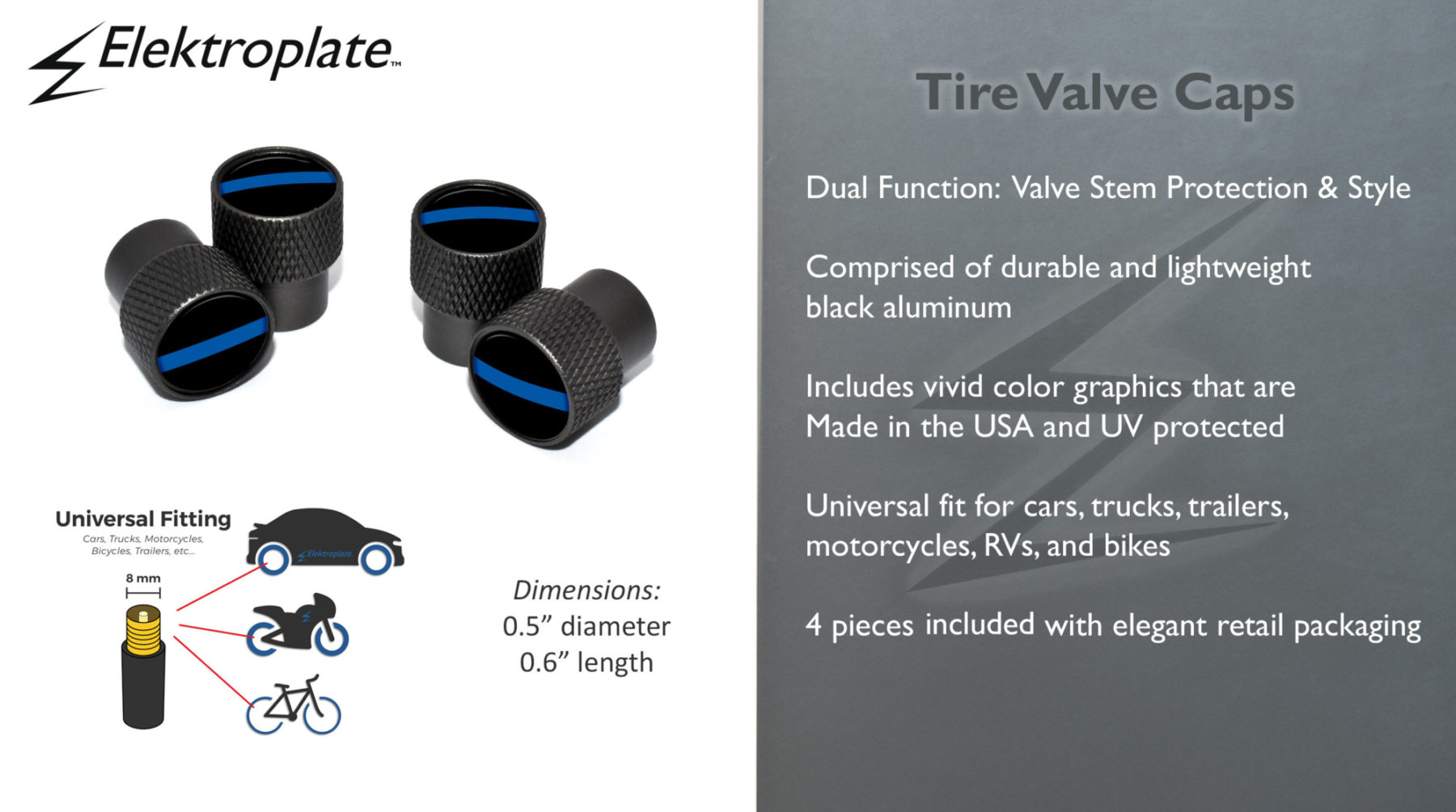 Unlike cheap imitations that fade or chip within months, Elektroplate valve stem caps are engineered to stay looking brand new for years. A strong way to showcase your police pride everywhere you drive, each set also comes packaged in elegant retail packaging—making them a perfect gift for law enforcement professionals and supporters.