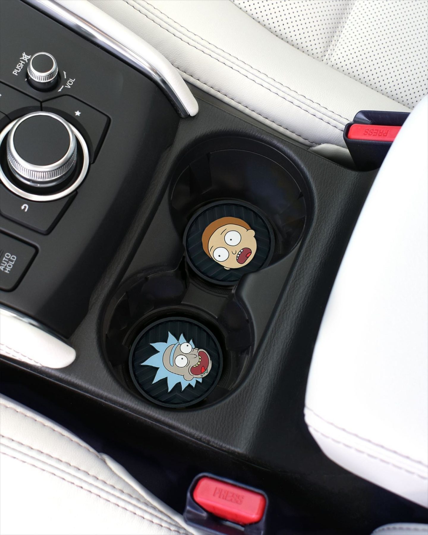 These officially licensed Rick & Morty silicone car coasters are designed to fit most standard vehicle cup holders, making them a universal option for cars, trucks, and SUVs. Crafted from flexible, easy-to-clean silicone PVC, these cup holder inserts help trap spills and condensation while protecting your vehicle’s interior from everyday use. Each coaster measures approximately 2.75 inches in diameter and 0.2 inches thick, offering a secure, low-profile fit that stays in place during daily driving.