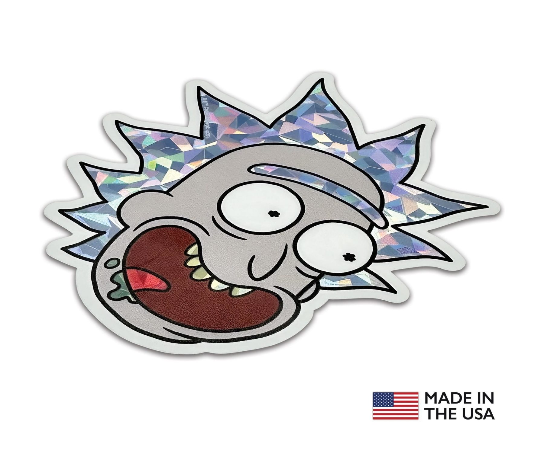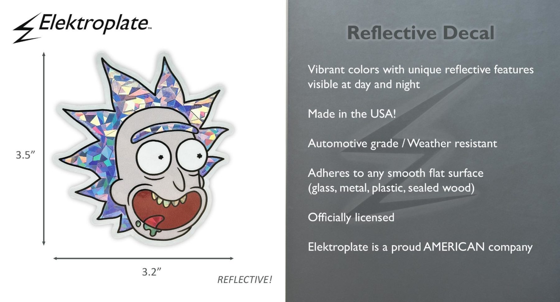Show off your love for interdimensional chaos with this Rick Sanchez from Rick and Morty reflective decal. Measuring approximately 3.2 inches wide by 3.5 inches tall, this decal is perfectly sized for cars, laptops, and more. The reflective surface enhances nighttime visibility while maintaining bold color during the day.