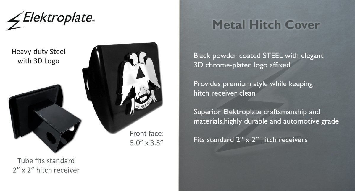 Honor your Masonic heritage with this Scottish Rite all-metal hitch cover by Elektroplate. Featuring a chrome-plated Scottish Rite emblem securely mounted on a black all-metal hitch plate measuring 5” x 3.5”, this hitch cover combines timeless symbolism with rugged durability. It fits all standard 2” trailer hitch receivers, and if it doesn’t fit perfectly, you may return it for a full refund.
