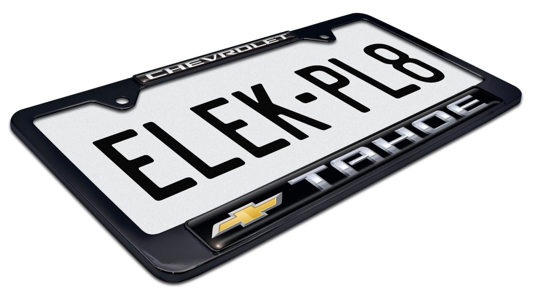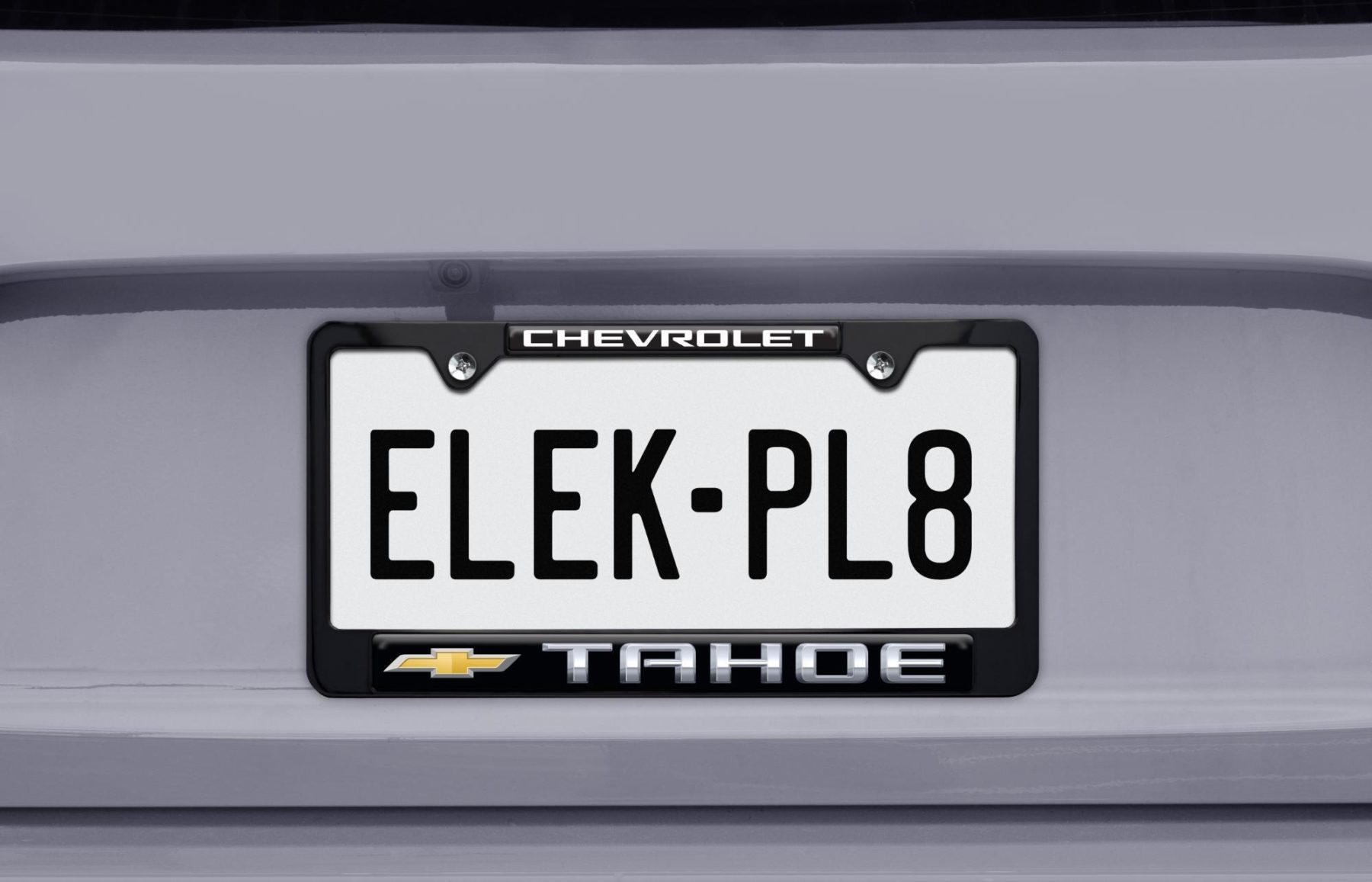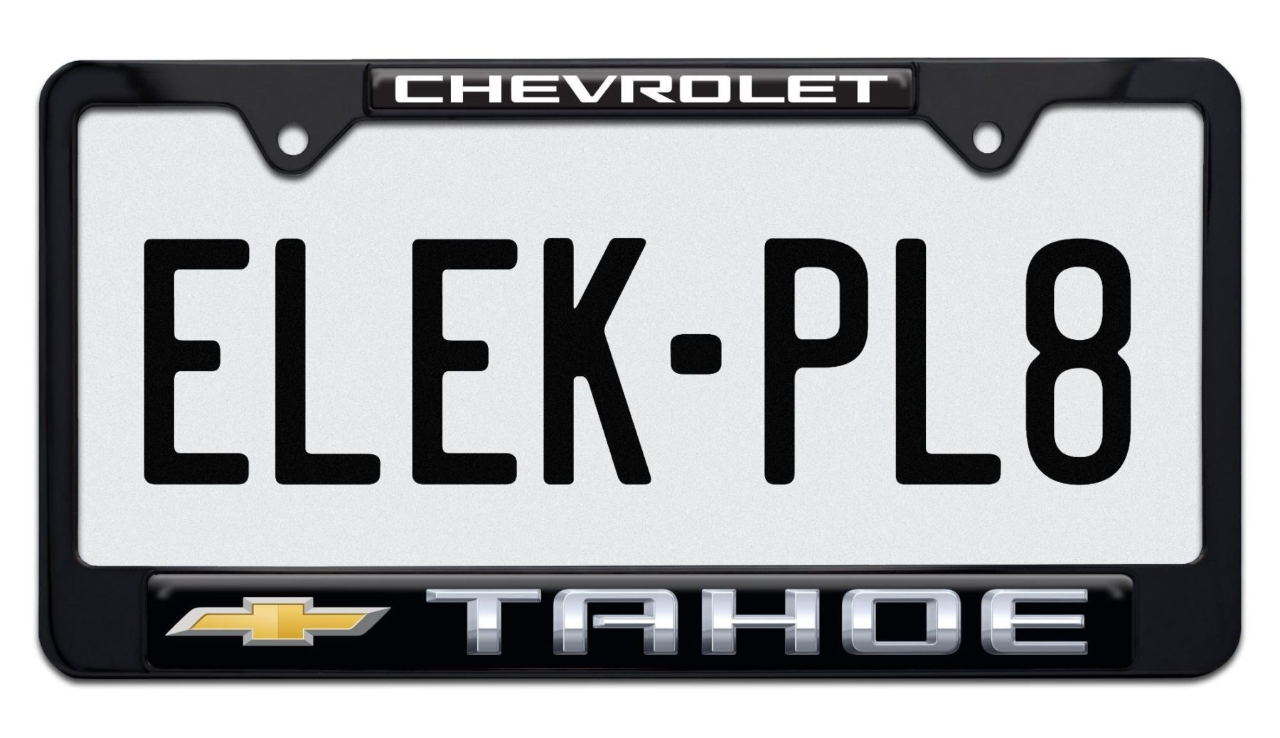 Add a premium finishing touch to your SUV with this officially licensed Tahoe Chevy license plate frame from Elektroplate. Designed for durability and style, this frame is made from high-quality metal with black powder coated or chrome plated finishes and fits standard US license plates. The 3D domed insert is made in the USA and features UV protection to resist fading and wear.