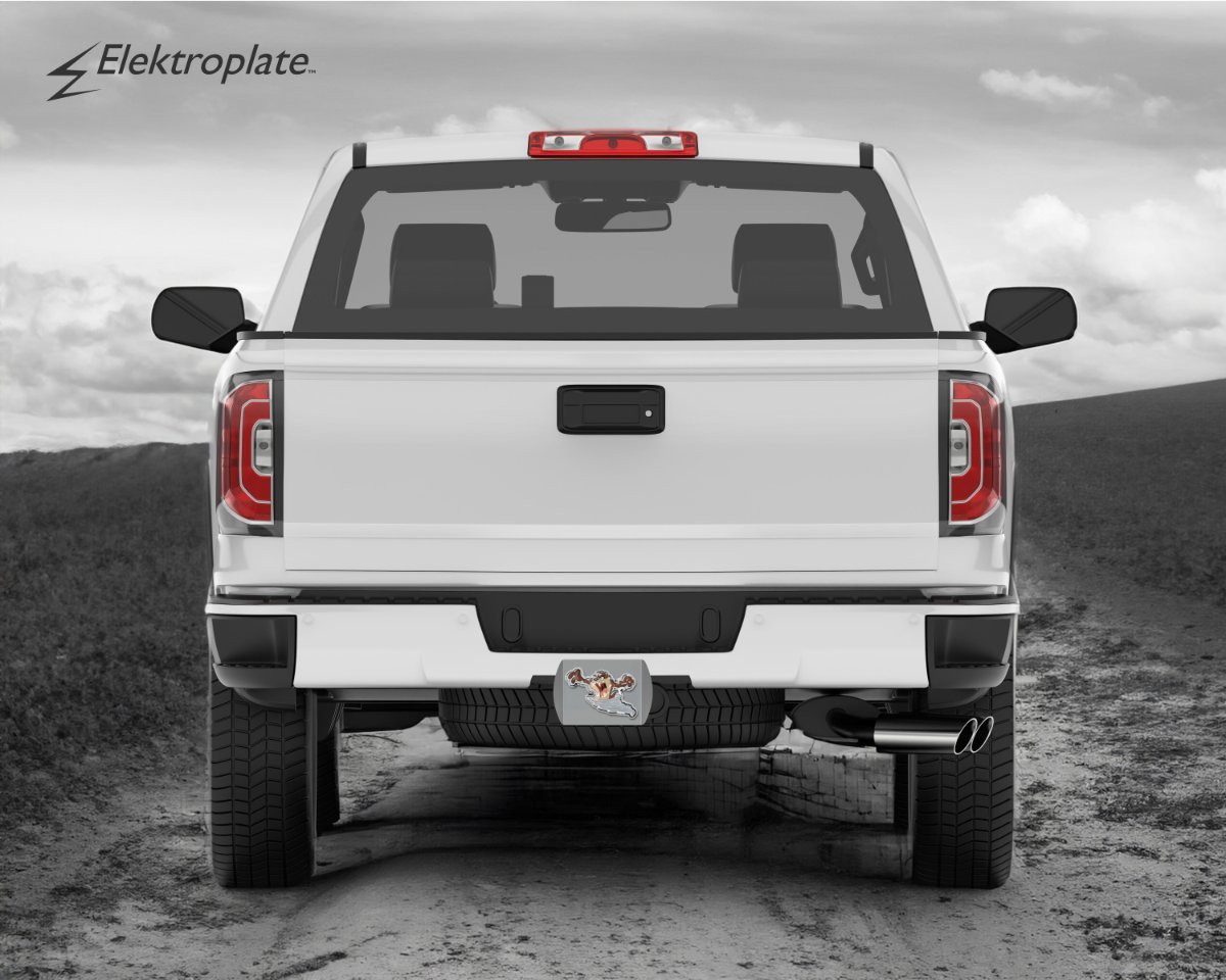 Crafted with a heavy-duty, weather-resistant metal finish, all Elektroplate hitch covers are designed to withstand harsh outdoor conditions and keep their vibrant look for years. This hitch cover resists fading, chipping, and wear, maintaining a like-new appearance through every drive.