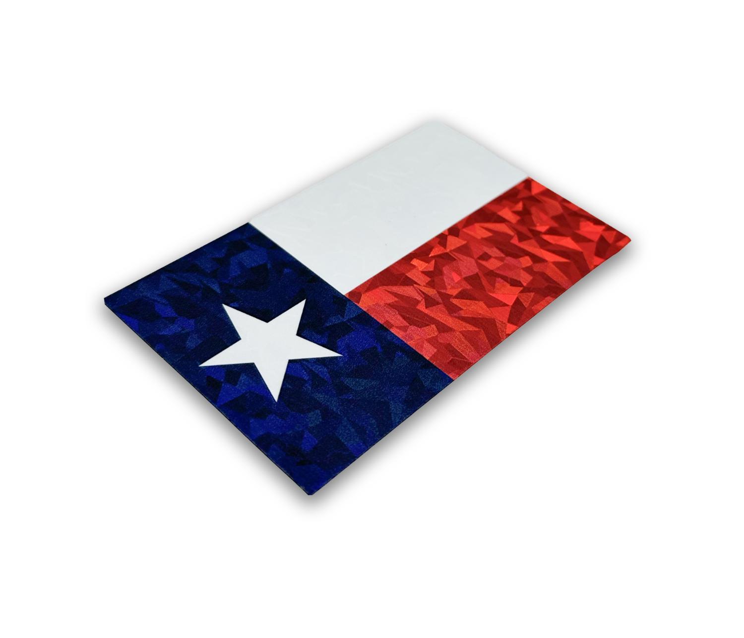 Texas Flag reflective decal (3.75" x 2.25") by Elektroplate. Comprised of UV-protected reflective material, Made in the USA. All Elektroplate reflective decals are extremely visible indoors and outdoors, which makes them perfect for any of the following applications: