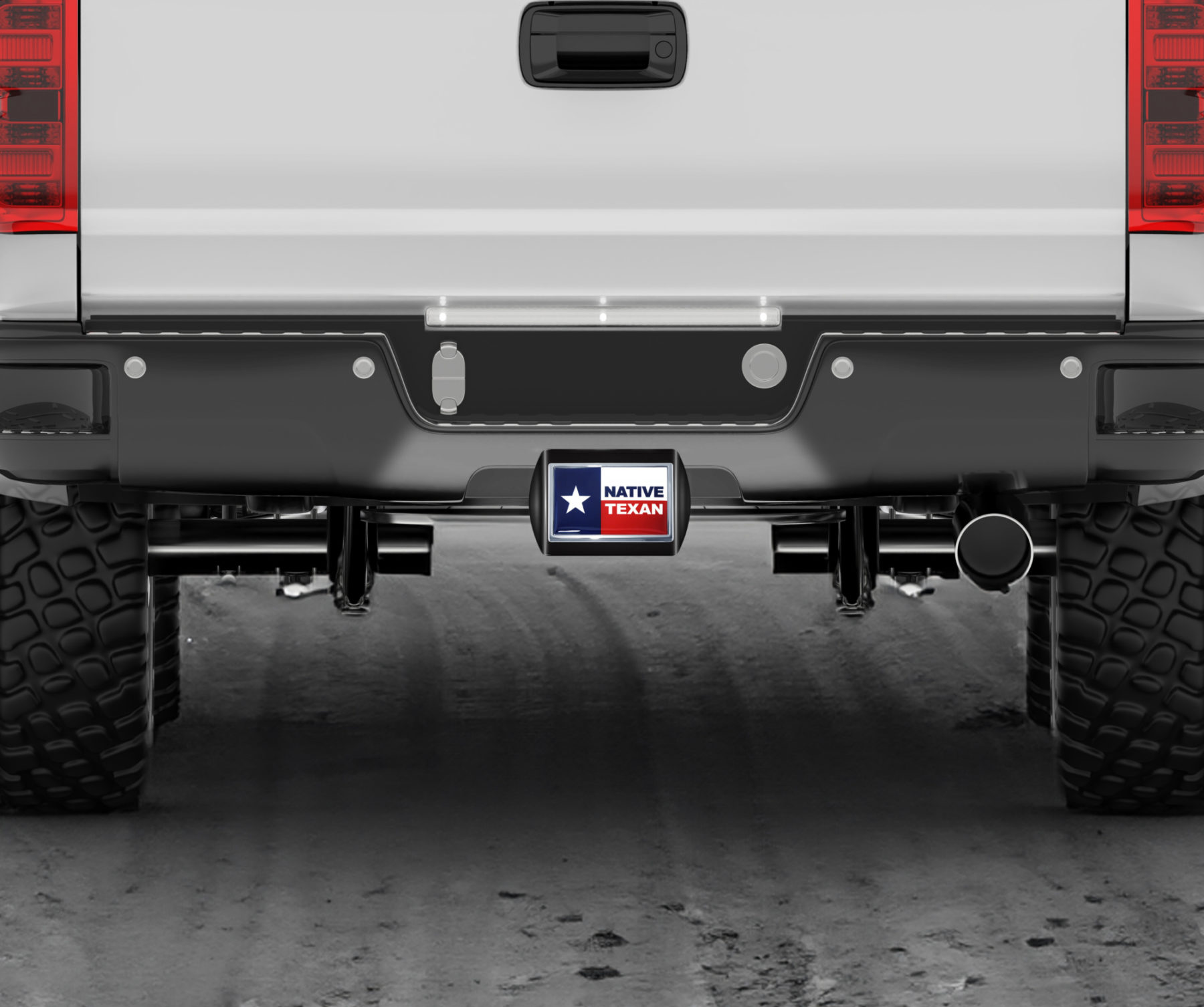 Native Texan Flag Emblem on Black Metal Hitch Cover