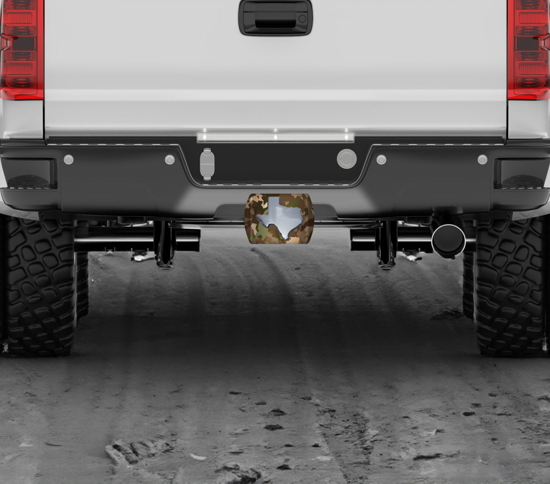 Texas Emblem on Woodland Camo Metal Hitch Covere