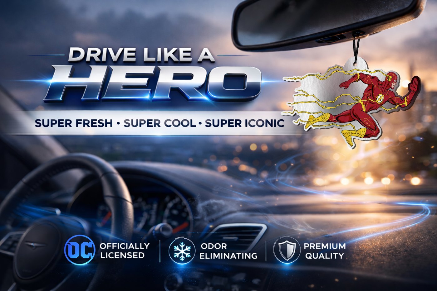 Each air freshener hangs easily from your rearview mirror, adding a dynamic, eye-catching touch to your vehicle interior. This 6-pack includes individually wrapped air fresheners for long-lasting freshness and convenience. Perfect for cars, trucks, SUVs, or even small spaces like lockers and offices, it’s a must-have for DC fans. Whether you’re looking for a Flash car air freshener or a unique gift, this set combines performance-inspired design with everyday practicality.