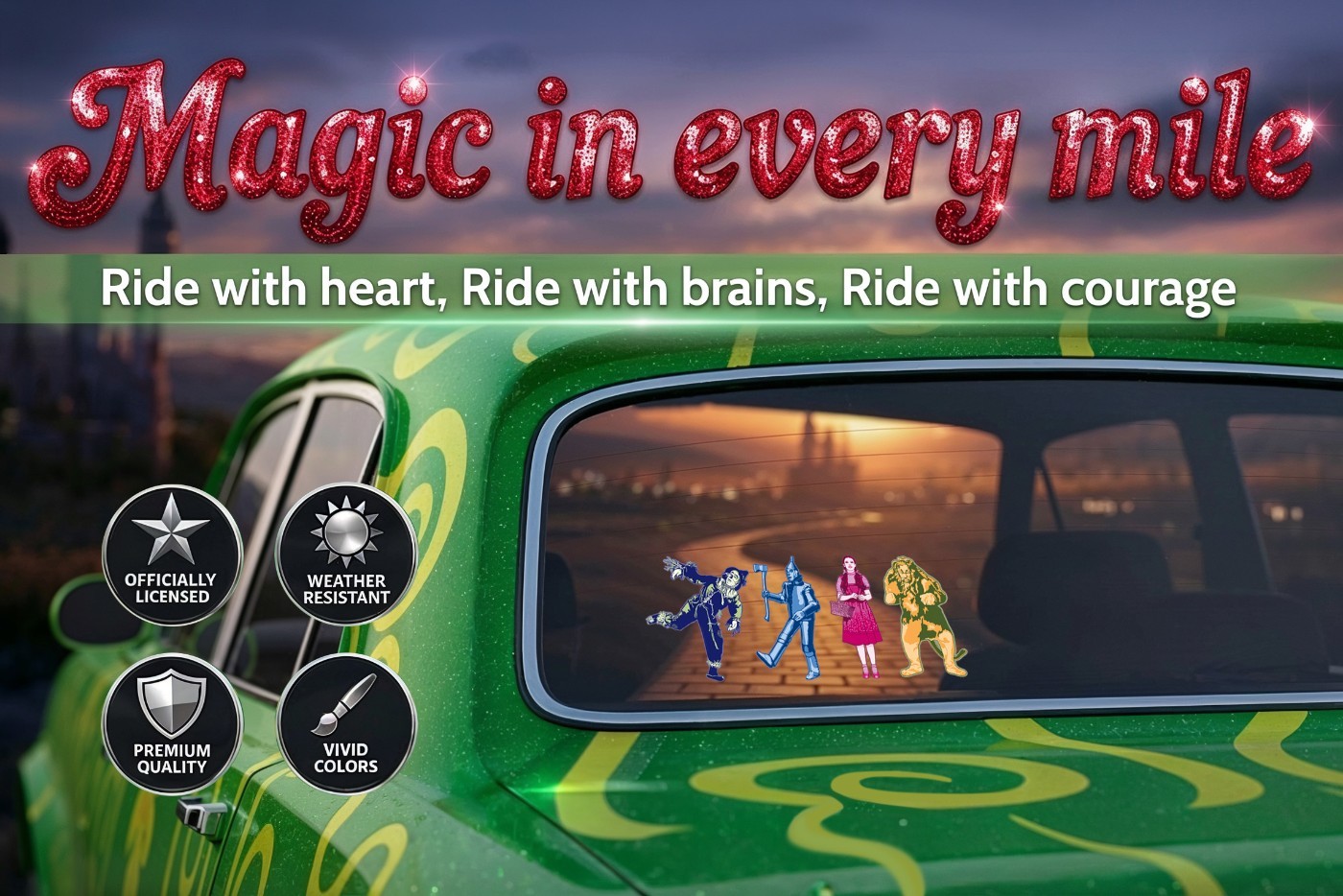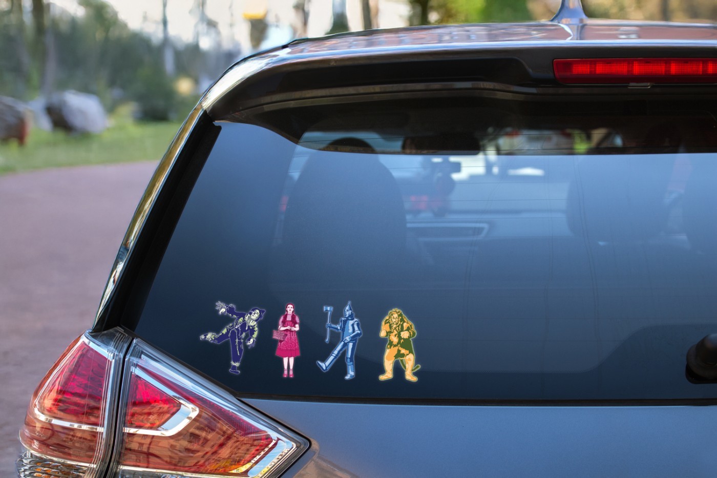 We're off to see the Wizard! Drive to the Emerald City with this Officially Licensed Wizard of Oz decal 4-pack. Proudly made in the USA, our decals are automotive grade, UV-protected, weather resistant full-color graphic stickers designed to last even in outdoor conditions.