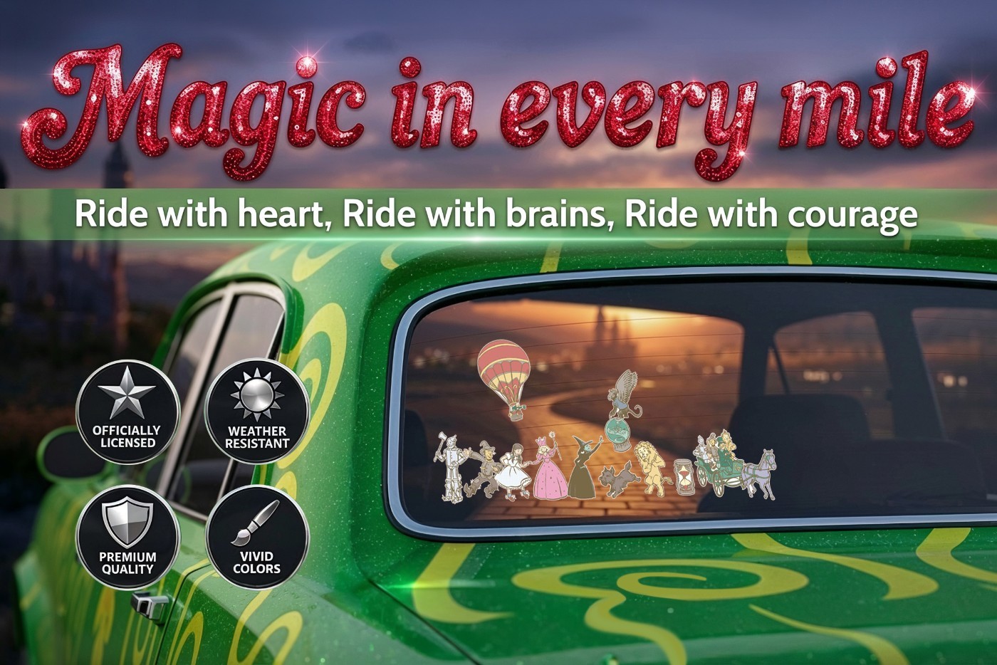 There's no place like home! Drive to the Emerald City with this Officially Licensed Wizard of Oz decal sheet with 12 iconic images (each approx. 1.8" tall). Proudly made in the USA, our decals are automotive grade, UV-protected, weather resistant full-color graphic stickers designed to last even in outdoor conditions.