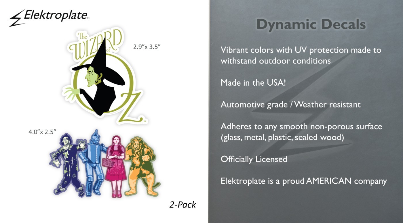 In addition, all Elektroplate decals are packaged in elegant retail packaging to make a great gift! Show your Oz movie pride everywhere you drive.