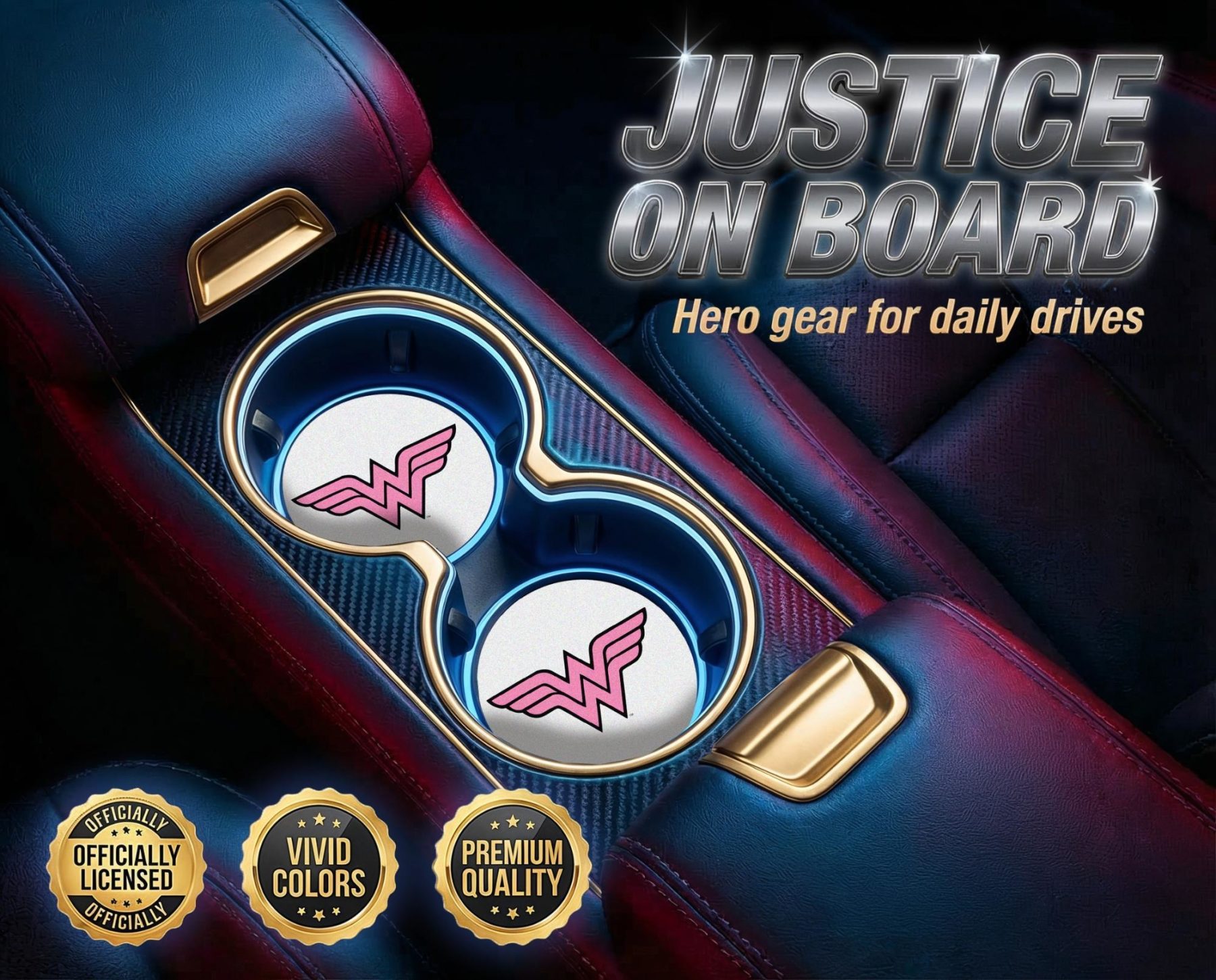 Absorbent Pink Wonder Woman Car Coasters - 2 Pack
