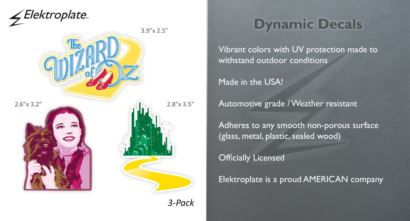 In addition, all Elektroplate decals are packaged in elegant retail packaging to make a great gift! Show your Oz movie pride everywhere you drive.