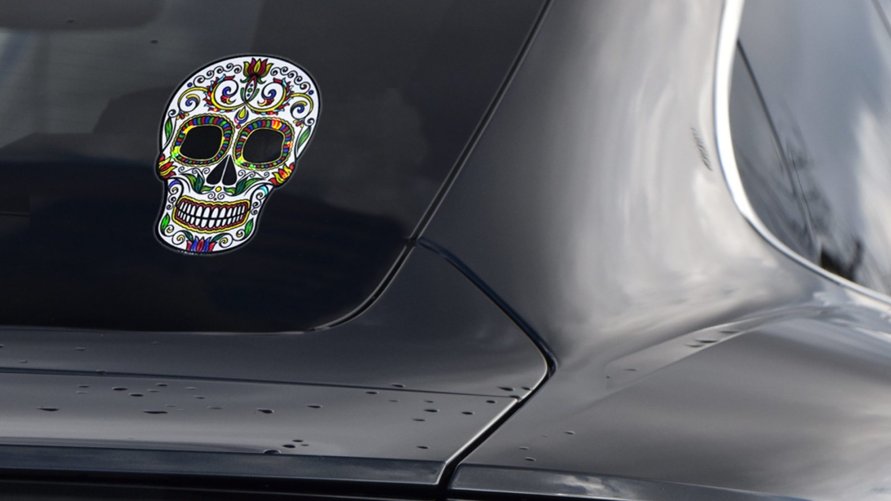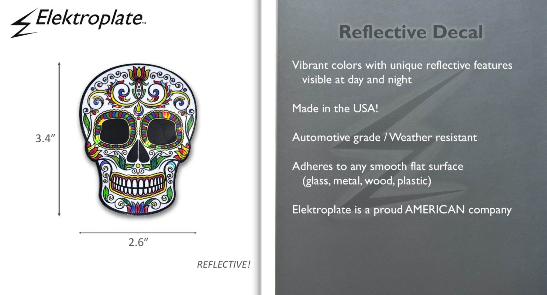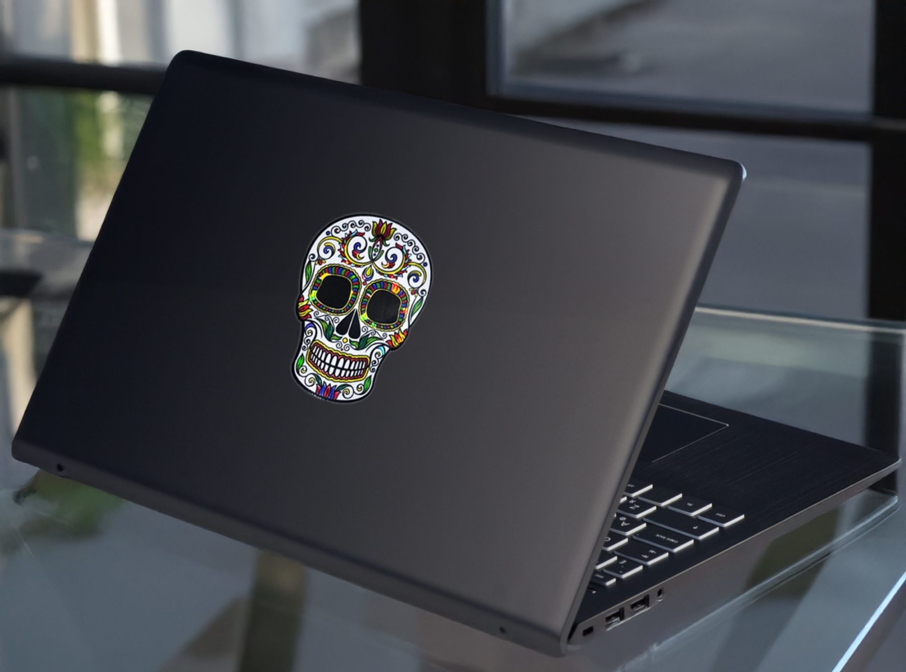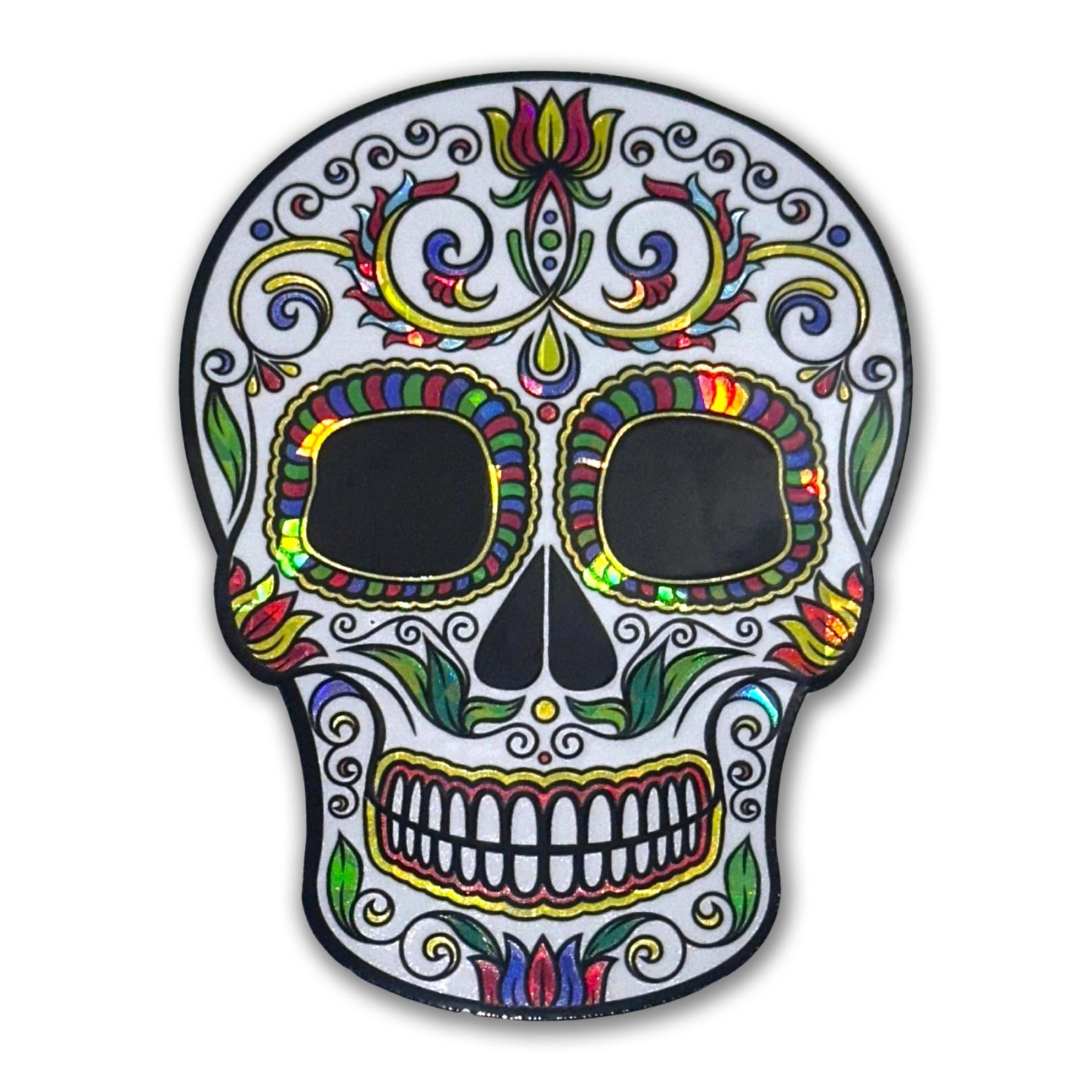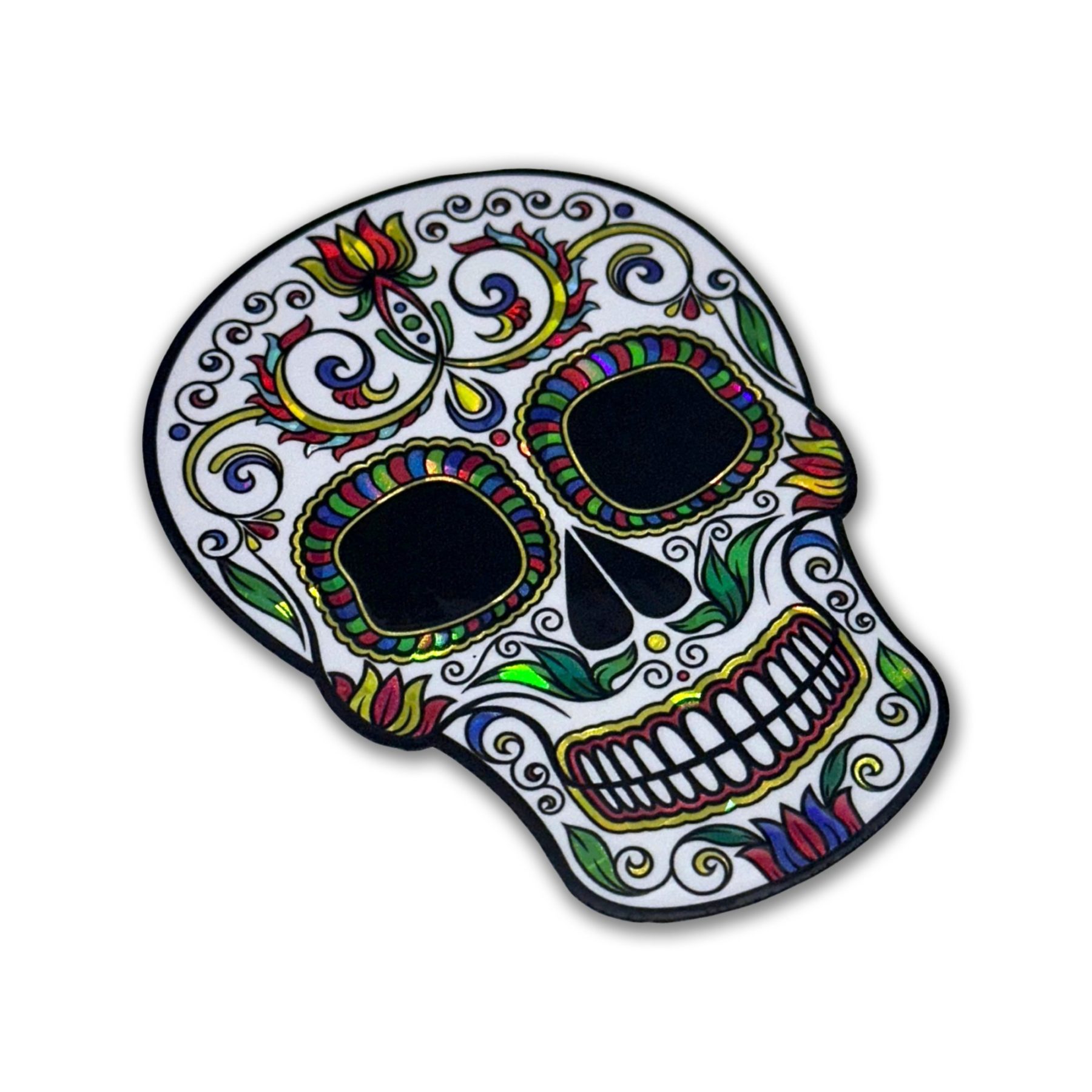 Celebrate the vibrant tradition of Día de los Muertos with this stunning yellow sugar skull decal, inspired by Mexican sugar skull art. Featuring intricate designs, bold colors, and a rich cultural heritage, this decal beautifully captures the essence of the Día de los Muertos celebration. Measuring 3.4" x 2.6", this eye-catching design is perfect for adding a festive touch to cars, trucks, SUVs, boats, RVs, iPads, computers, phones, and more. Made with high-quality materials for durability and long-lasting adhesion, this decal brings the timeless beauty of Mexican sugar skull art to any smooth surface.